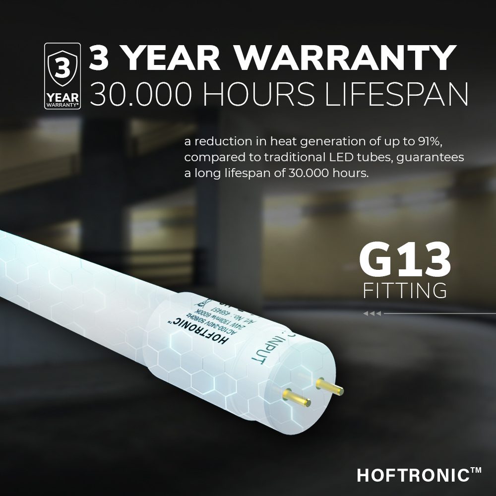 De LED buis heeft een exceptioneel design waarbij de componenten in de brandwerende afdekkap worden verwerkt en daardoor worden afgescheiden van de buis (nanoplastic en LEDs) waardoor een lange levensduur van 30.000 branduren wordt gegarandeerd. De afdekkappen zijn van brandwerende kunststof gemaakt waardoor deze tegen hoge temperaturen beschermd zijn. Door de unieke interne conditie en kwalitatieve componenten is deze buis flikkervrij, dit is zeer belangrijk bij de overstap naar LED. Traditionele TL verlichting en normaal LED TL buizen zijn niet flikkervrij en werken op 50-60 Hertz.