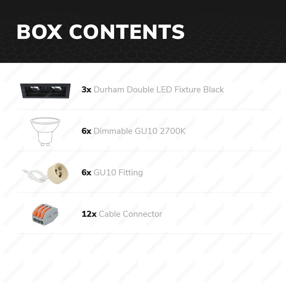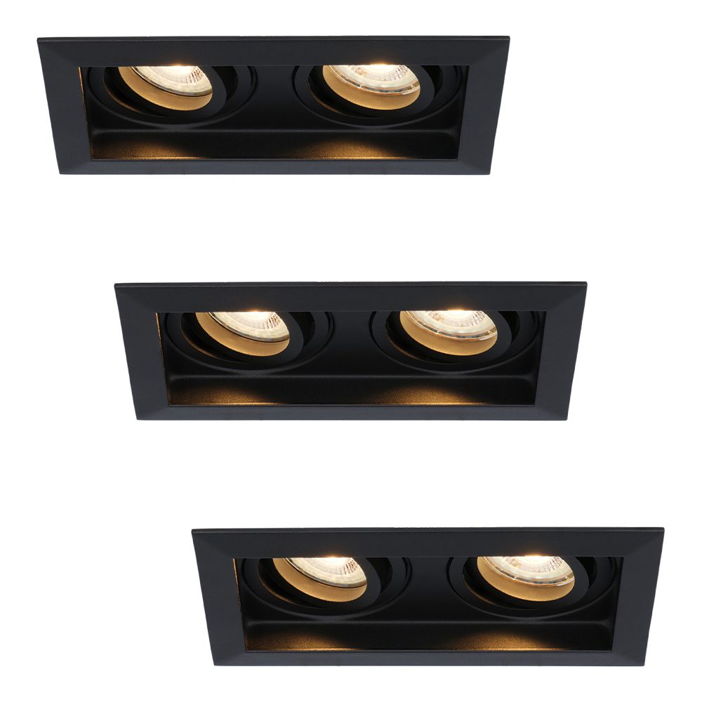 Set van 3 zwarte vierkante dubbele LED Inbouwspot Durham 2700K gemoedelijk warm wit
