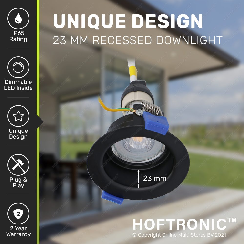 De Mari inbouwspot armatuur heeft een verdiepte fitting voor een GU10 of MR16 spot waardoor het een beetje verstopt in het plafond zit. Hierdoor zie je de lichtbron niet rechtstreeks als je kijkt naar het armatuur, zo krijg je een mooie lichtbundel uit het plafond zonder verblind te worden door het licht. De strakke finish en het gebruik van hoogwaardige materialen maken deze spot tot een echte must have thuis iedere ruimte! De zwarte inbouwspot heeft een zaagmaat van minimaal 67mm tot maximaal 75mm en een buiten doorsnede van 85mm en kan dankzij de IP65 beschermingsgraad op handzaam iedere plek worden geïnstalleerd.