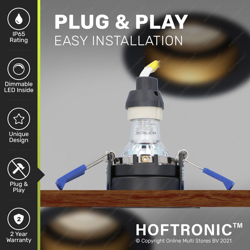 De Mari LED inbouw spot is moeiteloos te installeren door het plug & play systeem dat aan de spot bevestigd zit, dit systeem bestaat uit een GU10 fitting en een aansluitdoos. Sluit de spot in huis een handomdraai aan op het lichtnet en installeer de meegeleverde GU10 lichtbron in de GU10 fitting. Deze inbouwspot wordt regelrecht aangesloten op het 230V lichtnet waardoor je geen trafo hoeft weg te werken.