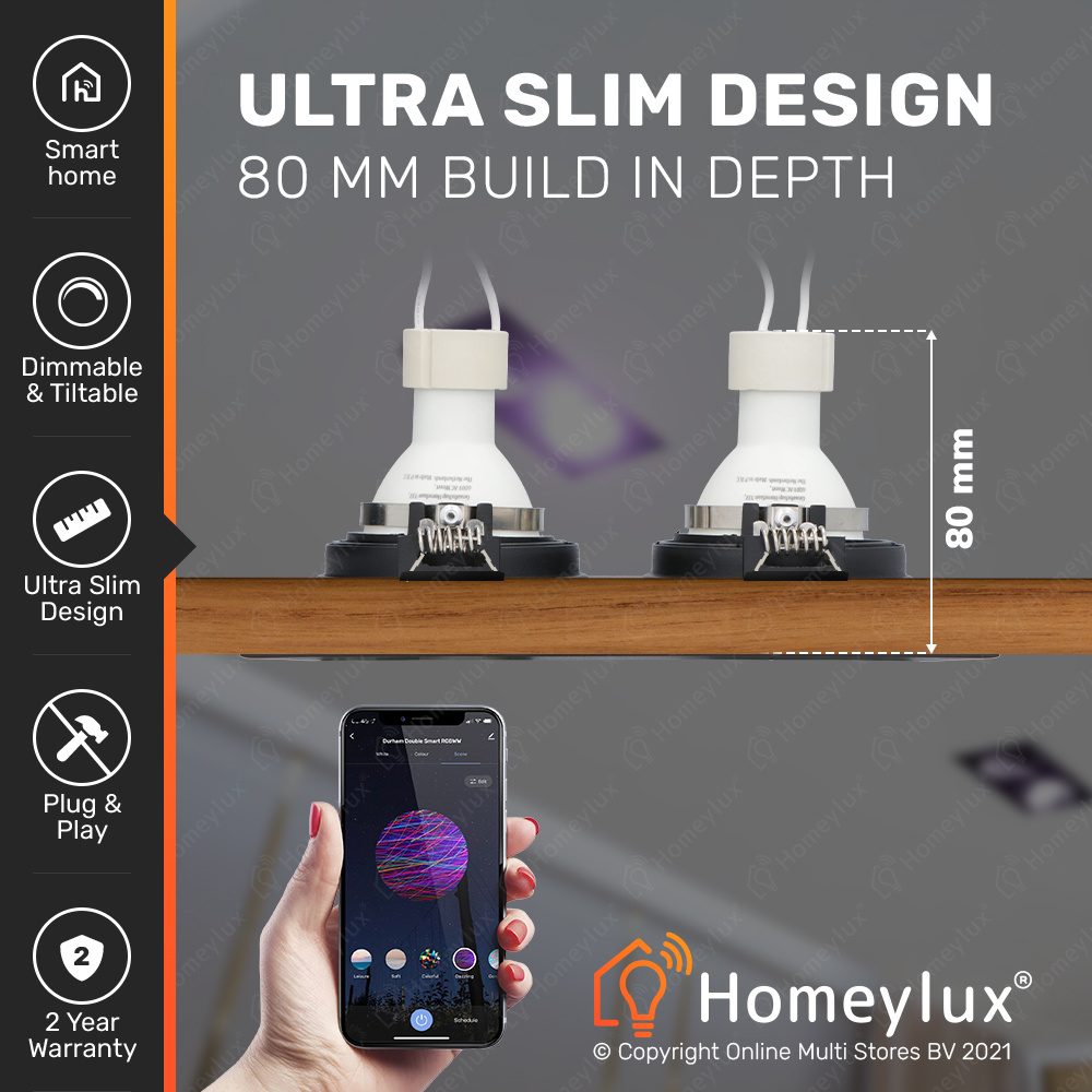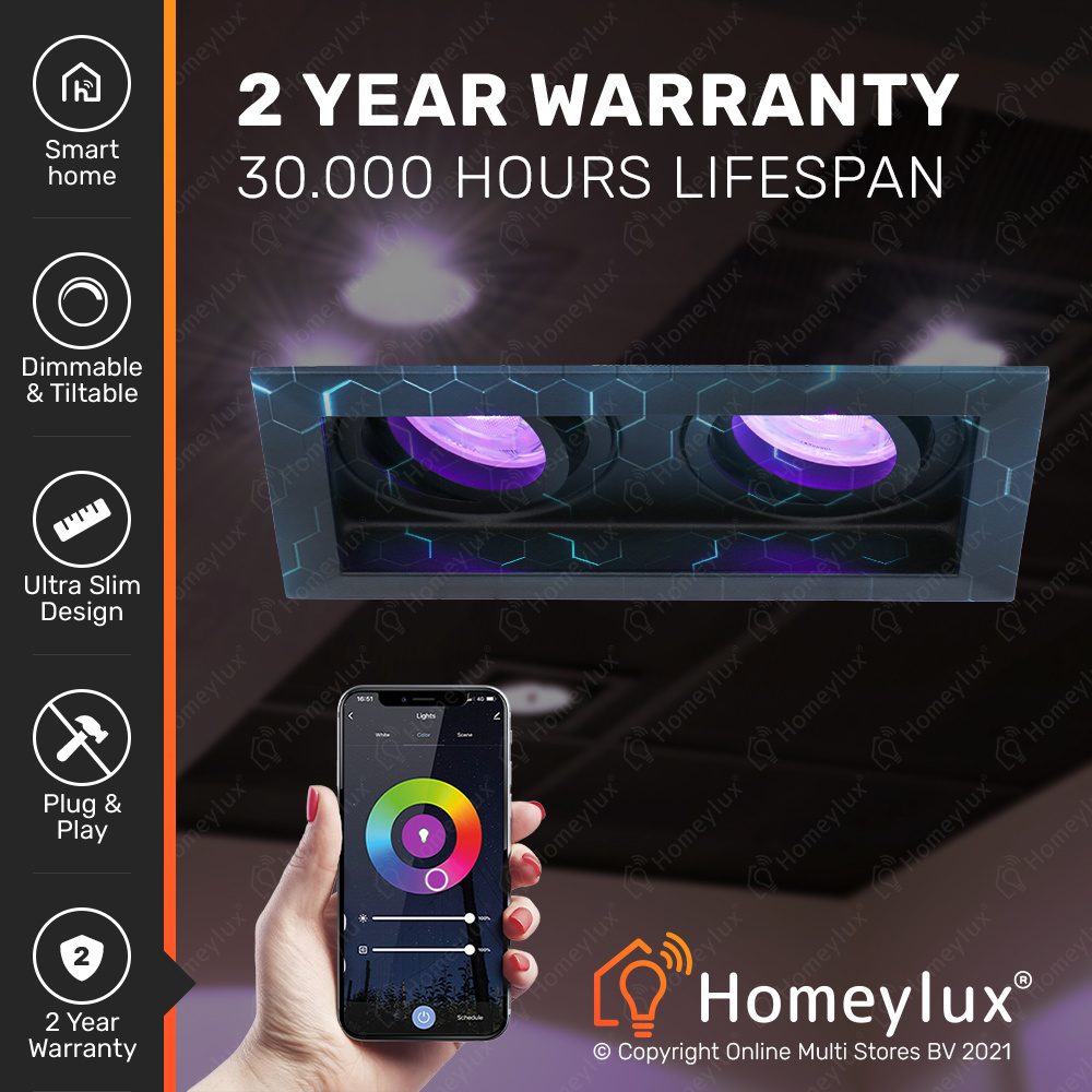 De Durham smart inbouwspot is een smart product van Homeylux. Dit wil zeggen dat het apparaat met de Homeylux App bedient kan worden. De app is genoeglijk kosteloos te downloaden via de Google Play store wanneer je een Android smartphone hebt, of via de Apple Store wanneer je een IOS smartphone hebt. De Durham slimme inbouwspot wordt gekoppeld aan de app via je WIFI netwerk. Zorg ervoor dat je binnen twee meter van je router zit om het slimme apparaat te kunnen koppelen.