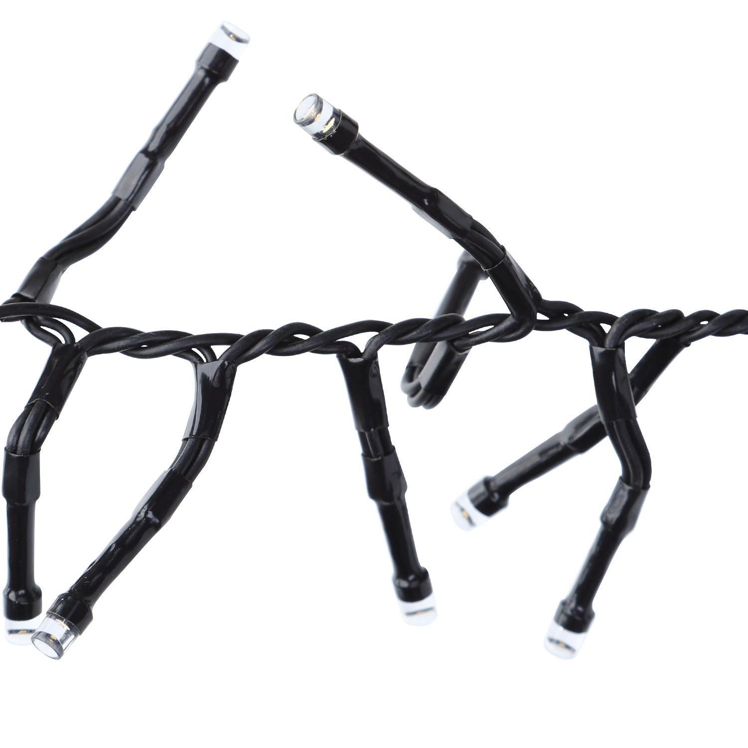 Deze huiselijke kerstverlichting heeft 250 extra warm witte LED lampjes. En doordat de kabel zwart is, lijken de lichtjes in de boom, aan de gevel of aan de regenpijp bijna te zweven.