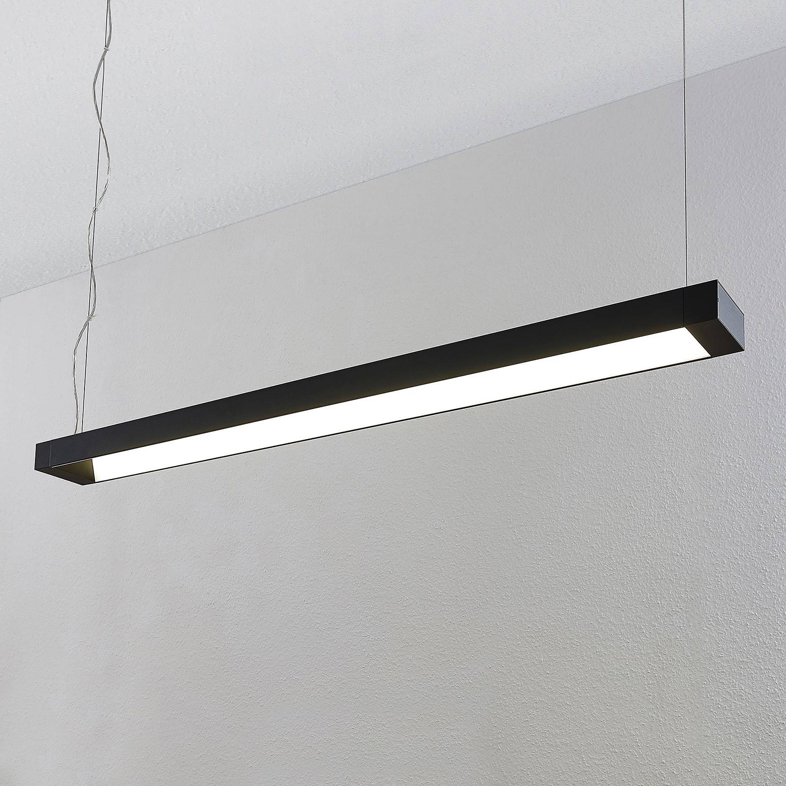 LED-kantoorpendellamp Cuna met zwart oppervlak en rechthoekige vorm Cuna is een LED pendelarmatuur die helder licht produceert en werkplekken goed verlicht. De lichtkleur is universeel wit, wat tijdens het werk als bijzonder aangenaam voor de ogen wordt ervaren, zodat vermoeidheidsverschijnselen minder snel optreden. Het langwerpige frame van het armatuurlichaam is zwart geschilderd en heeft een hoekige vorm. Het licht van de LED’s wordt uitgezonden onder een hoek van 120 graden. Technische gegevens: – 120° stralingshoek – Universele witte lichtkleur – slagvastheidsklasse IK03 – SDCM < 5 - Mogelijkheid van doorvoerbedrading Bekijk productspecificaties