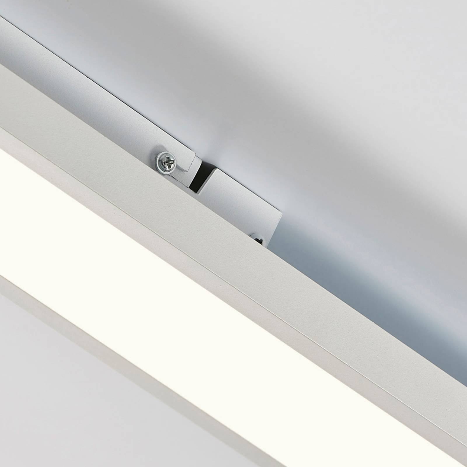 Helder LED-paneel Enora met warm witte kleurtemperatuur In principe is dit LED-paneel vrij eenvoudig, want zowel het PMMA-oppervlak als het aluminium frame zijn wit en hoekig. Daarom integreert hij zeer goed in commerciële omgevingen en kan hij bijvoorbeeld kantoren en andere werkruimten op passende wijze verlichten. Bovendien zijn de LED’s energiebesparend en schijnen ze nog steeds helder en verspreiden ze dankzij het PMMA-oppervlak een gelijkmatig licht in de ruimte. – Met hoogwaardige, schroefloze snelkoppeling (duurzaam, veilig en zonder gereedschap werkend veermechanisme).