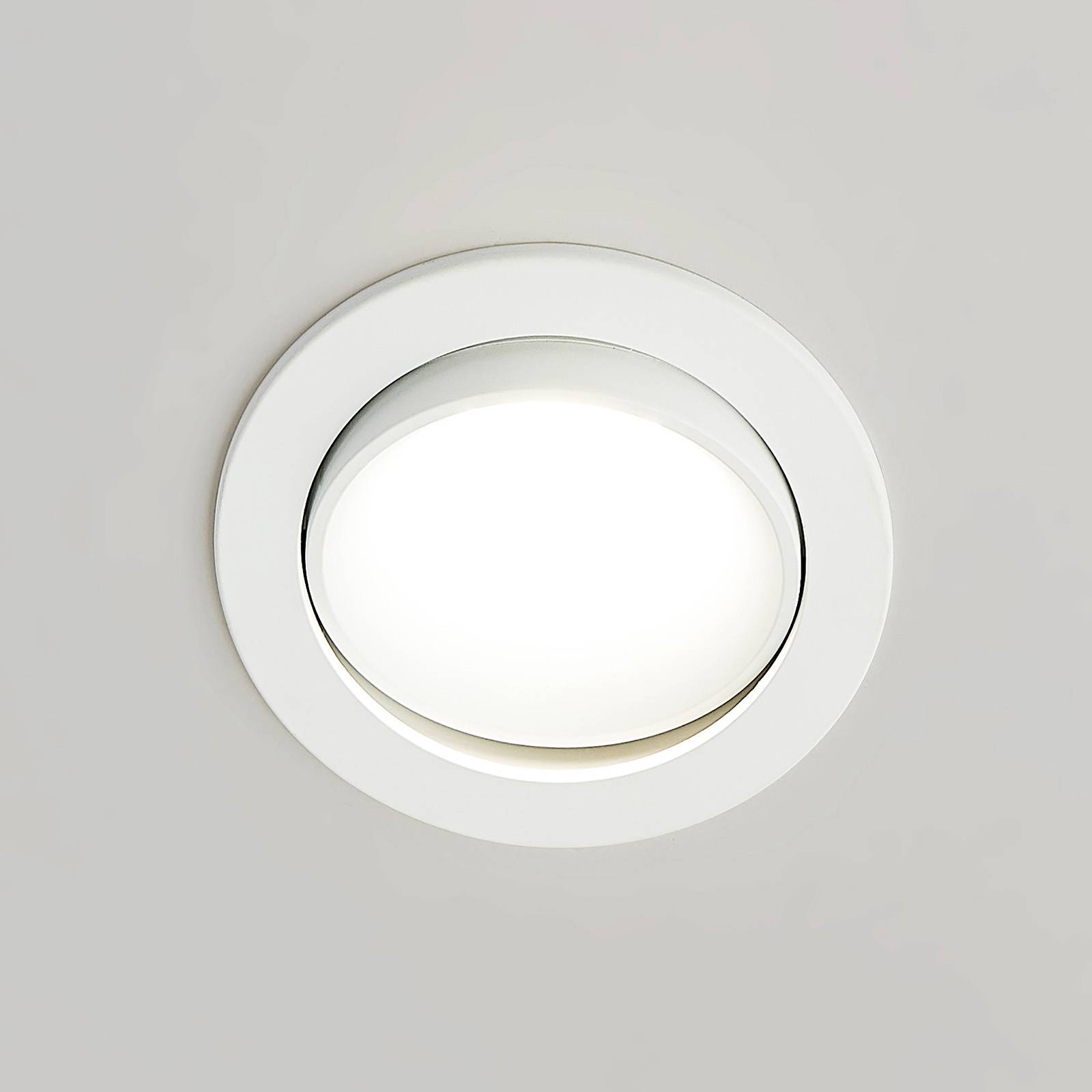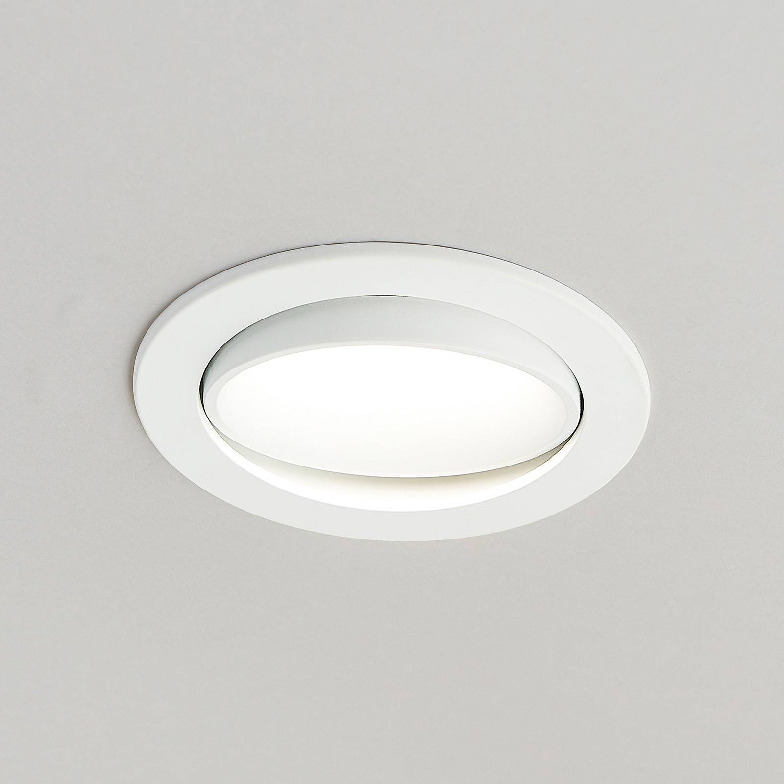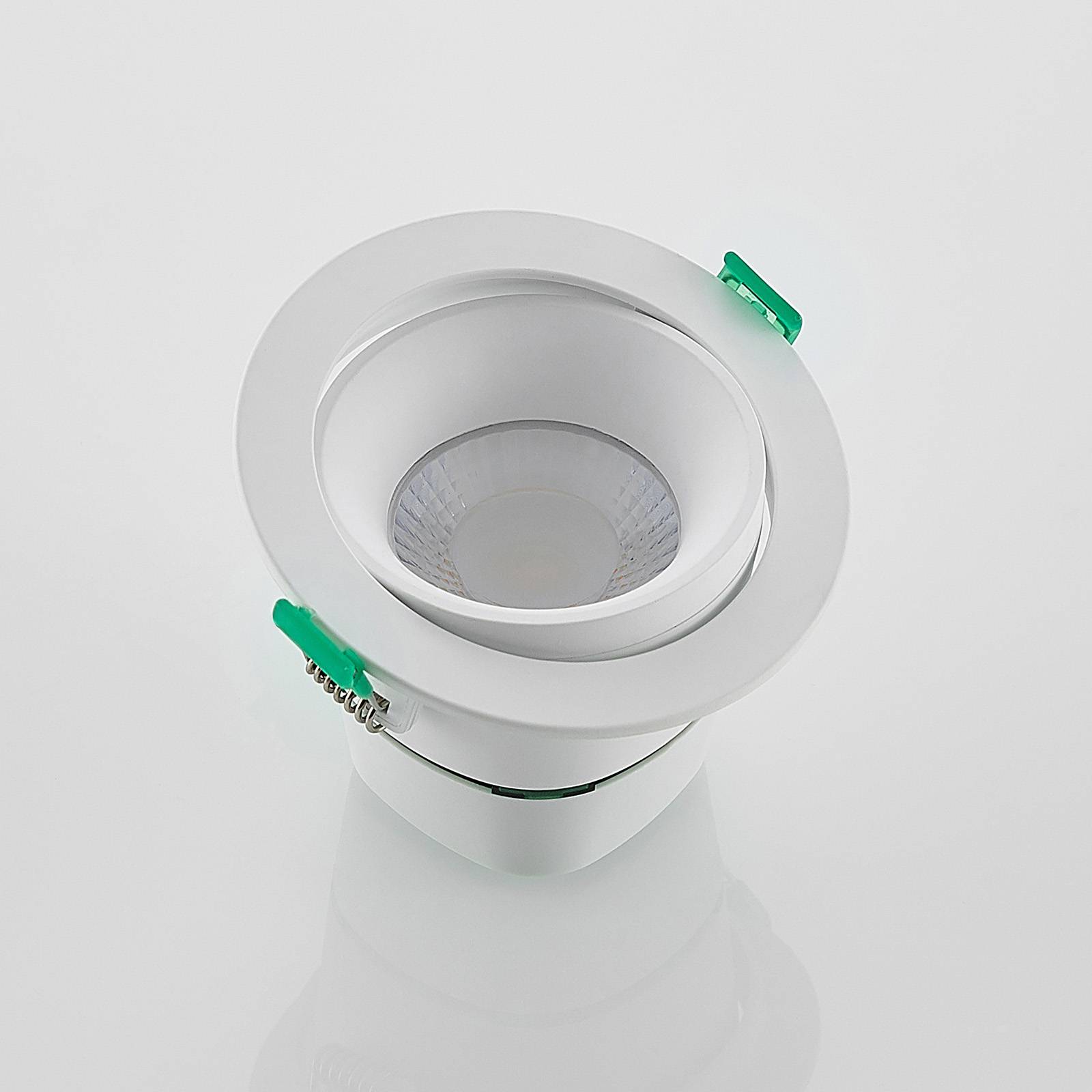 Zwenkbare, dimbare LED-inbouwspot Katerin met wit frame en ronde vorm, lichtkleur instelbaar Katerin is een zeer handige LED-inbouwspot die in drie lichtkleuren kan schijnen. Vóór de montage en inbouw in het plafond moet een keuze worden gemaakt uit een van de drie lichtkleuren, die vervolgens kunnen worden bediend via een DIP-schakelaar op de behuizing. In het midden van de witte armatuurbehuizing bevindt zich het zwenkbare armatuurlichaam, dat tot 25° kan worden gekanteld zodat de lichtuitstraling beter kan worden bepaald. Het licht ontsnapt onder een tamelijk smalle hoek van 36°, zodat een overwegend punctueel licht wordt geproduceerd en afzonderlijke voorwerpen of gebieden gericht kunnen worden verlicht. Met beschermingsniveau IP44 kan de armatuur ook zonder problemen in badkamers en andere vochtige ruimten worden gebruikt, omdat ze afdoende is beschermd tegen vuil en vocht. Het gebruik van de armatuur is niet beperkt tot woonkamers; Katerin kan ook worden gebruikt als inbouwarmatuur in een commerciële omgeving. De dimbaarheid van de LED’s blijkt altijd een voordeel te zijn, vooral omdat de spot zowel via een leading-edge als een trailing-edge fasedimmer kan worden aangestuurd. – Doorvoerbedrading mogelijk – SDCM < 5 - UGR < 21 Bekijk productspecificaties