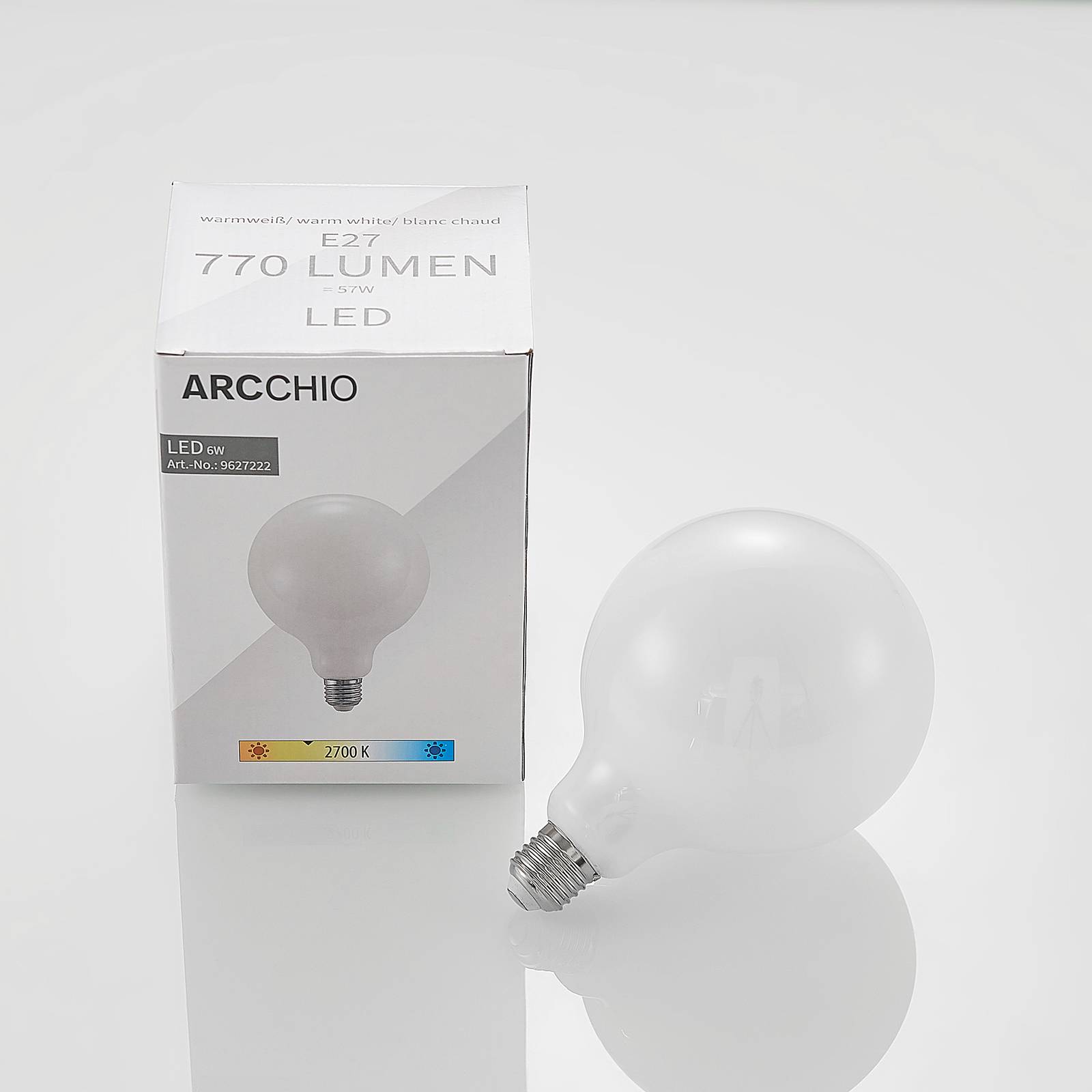 LED lamp E27 6 W, warm witte lichtkleur (2.700 K) en opaal oppervlak Deze LED lamp is zuinig in stroomverbruik en presenteert zich in een mooie opaal witte look. Dit heeft het voordeel dat de lamp tijdens het gebruik niet verblindt. Het maximale vermogen komt overeen met de bekende gloeilamp met een vermogen van 57 W. – dimbaar met leading-edge en trailing-edge fasedimmers