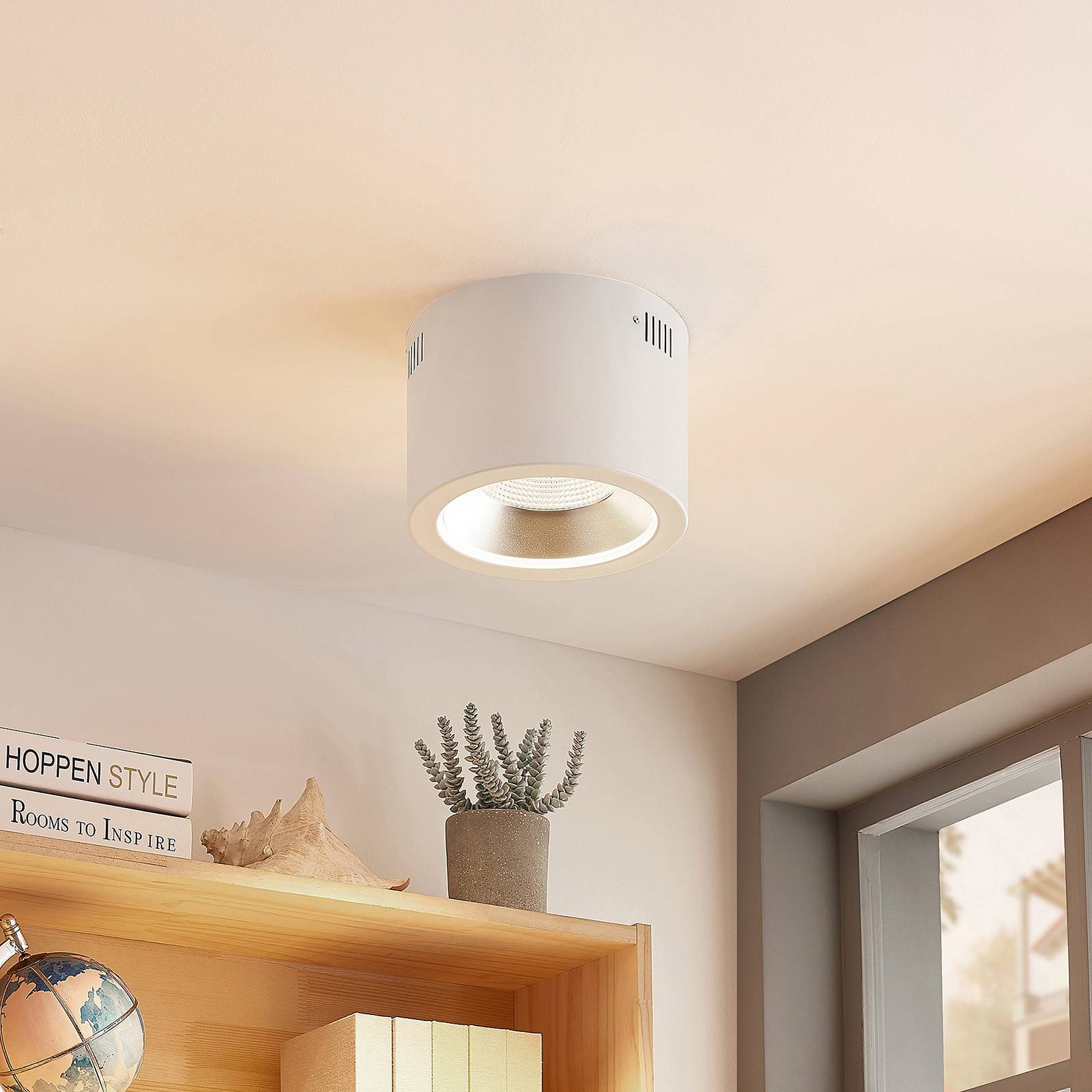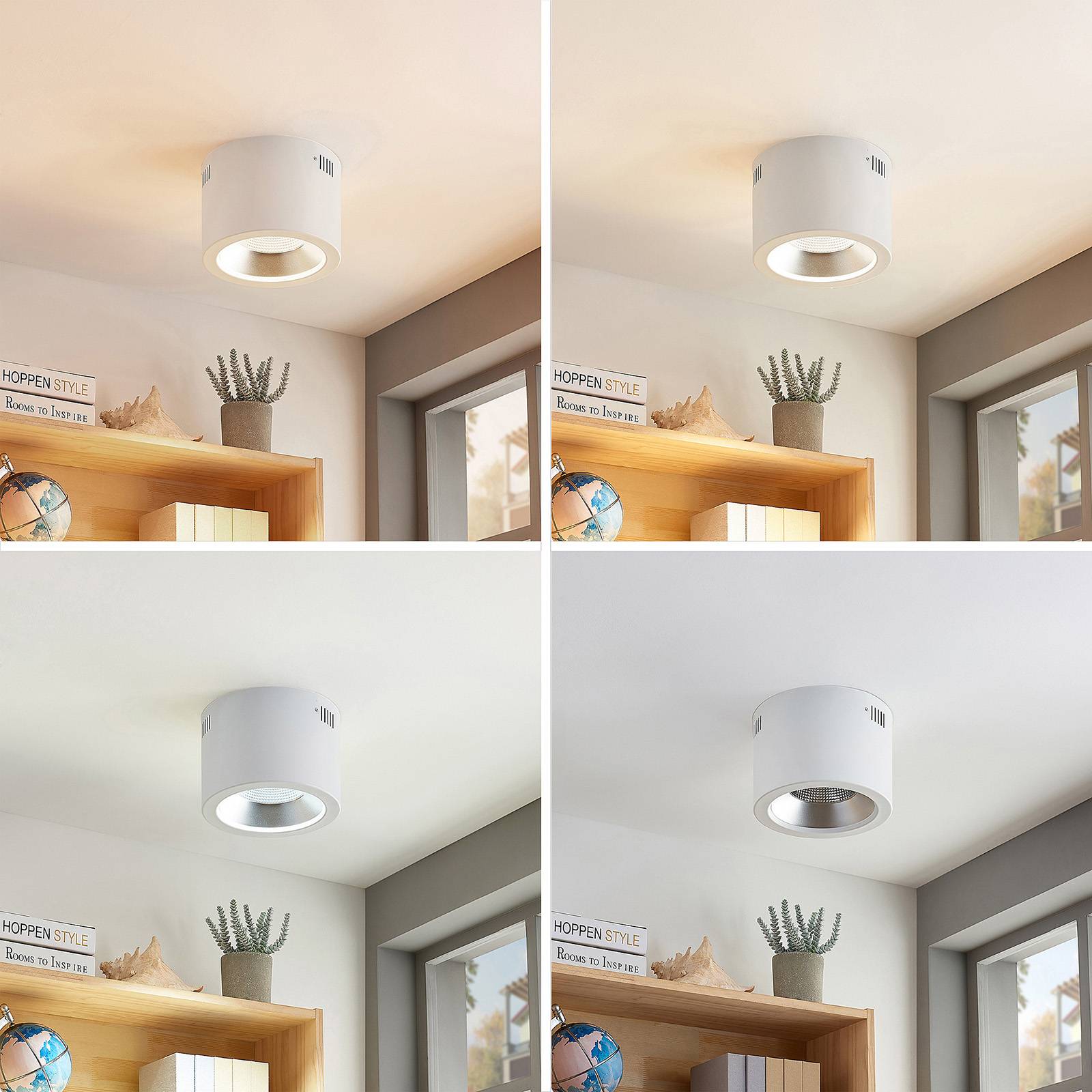Ronde LED-downlight Liddy met witte afwerking en vooraf instelbare lichtkleur, UGR < 19 Liddy past perfect in veel verschillende woon- en werkruimten, omdat de LED-downlight zich presenteert in een zeer eenvoudige, tijdloze ronde vorm en met een witte afwerking. De stralingshoek is 60°, wat een wat breder verspreid licht oplevert waarmee een ruimte over een groter oppervlak kan worden verlicht. De LED-downlight kan in drie lichtkleuren worden gebruikt, waarbij u tijdens de installatie moet beslissen in welke van de drie mogelijke kleurtemperaturen u Liddy wilt laten schijnen, want de schakelaar voor het selecteren van de gewenste toon bevindt zich aan de achterkant van de behuizing. Met een UGR-waarde van minder dan 19 kan de Liddy LED-downlight ook worden overwogen voor gebruik op computerschermwerkplekken, en ook doorvoerbedrading voor een betere bedrading van meerdere armaturen is mogelijk. Technische gegevens: - Lichtkleur te kiezen vóór montage - flikkervrije driver - slagvastheidsklasse IK03 - UGR < 19 - Doorvoerbedrading mogelijk - SDCM < 6 Bekijk productspecificaties