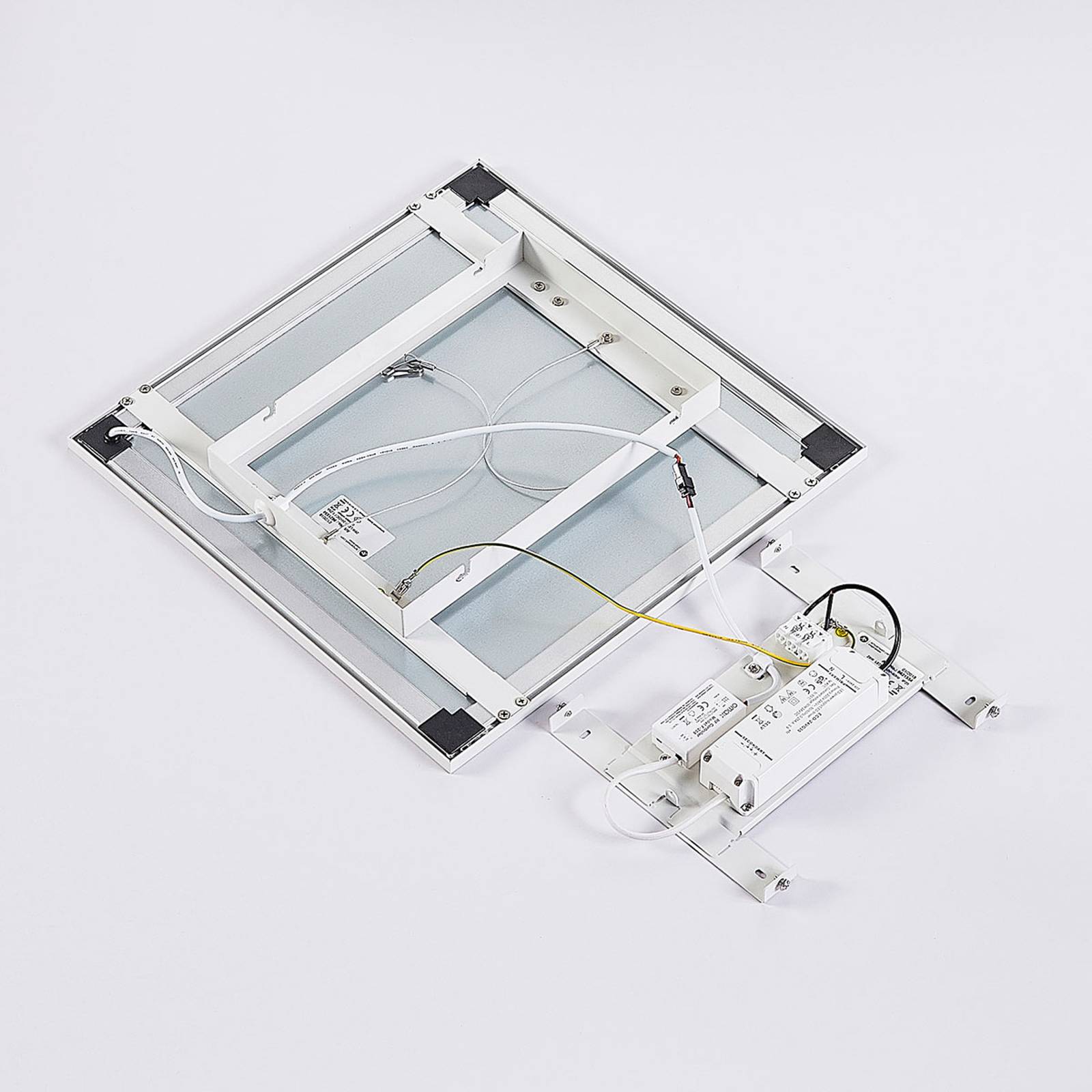 Hoekige LED-plafondlamp Lysander in de vorm van een paneel, lichtkleur en lichtsterkte via afstandsbediening instelbaar Met haar vierkante basisvorm en wit metalen frame (RAL 9016) is deze LED plafondlamp het toonbeeld van moderne eenvoud. Omdat het paneel visueel zo discreet is, komen de functies van Lysander snel naar voren. Enerzijds kan de LED plafondlamp via de afstandsbediening worden gedimd, anderzijds kan ook de lichtkleur worden aangepast. Hier kunt u kiezen uit de lichtkleuren warm wit, universeel wit of daglicht. Een warme witte tint heeft meer een gezellig effect, terwijl de andere twee kleurtemperaturen een koeler effect hebben en beter geschikt zijn voor het werk. Tenslotte scoren de LED’s van het paneel met een goede lichtopbrengst en een relatief laag stroomverbruik. – Met hoogwaardige, schroefloze snelkoppeling (duurzaam, veilig en zonder gereedschap werkend veermechanisme).