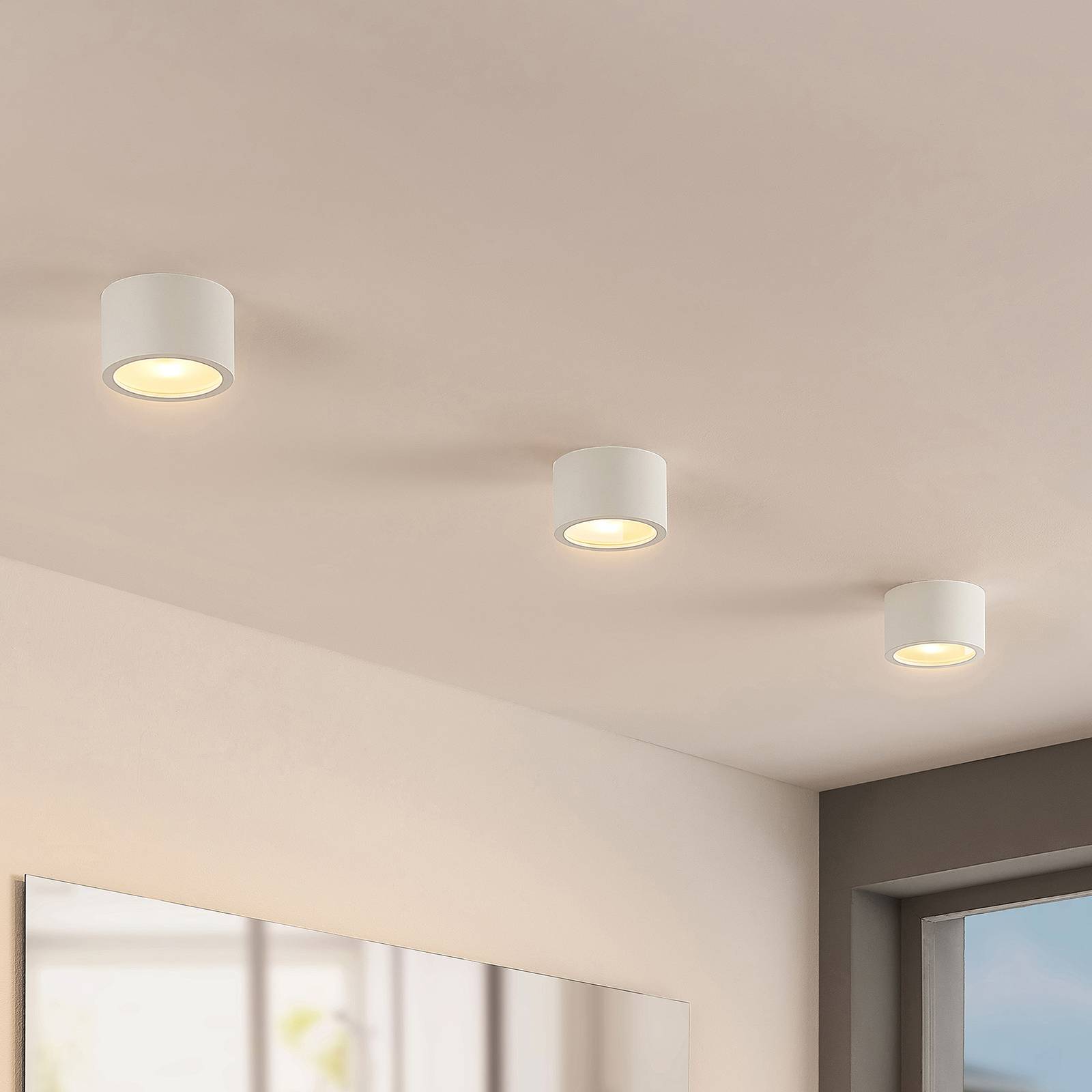 Ronde downlight Nieva met witte afwerking en schroefloze aansluitklem Deze downlight met zijn compacte ontwerp is een van de meest veelzijdige plafondlampen voor keukens, gangen en andere ruimtes in privé- en commerciële omgevingen. Het ontwerp lijkt zeer tijdloos en eenvoudig, zodat het in tal van stijlen past. De plafondlamp met het licht naar beneden is rond en heeft een wit oppervlak dat altijd harmonieus lijkt en de hedendaagse elegantie belichaamt. De downlight met de cilindrische vorm heeft ook een snelkoppelingsklem waarmee de bekabeling zonder schroeven kan worden aangesloten, zodat de installatie snel, veilig en zonder gereedschap kan worden uitgevoerd.