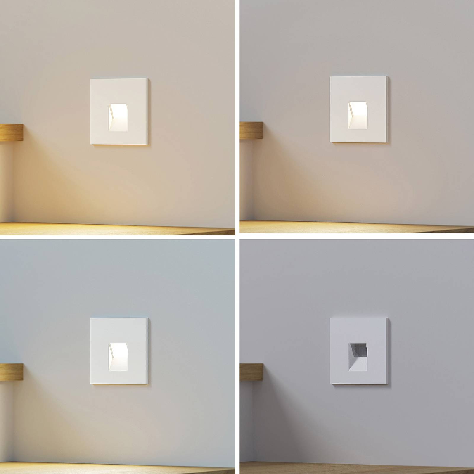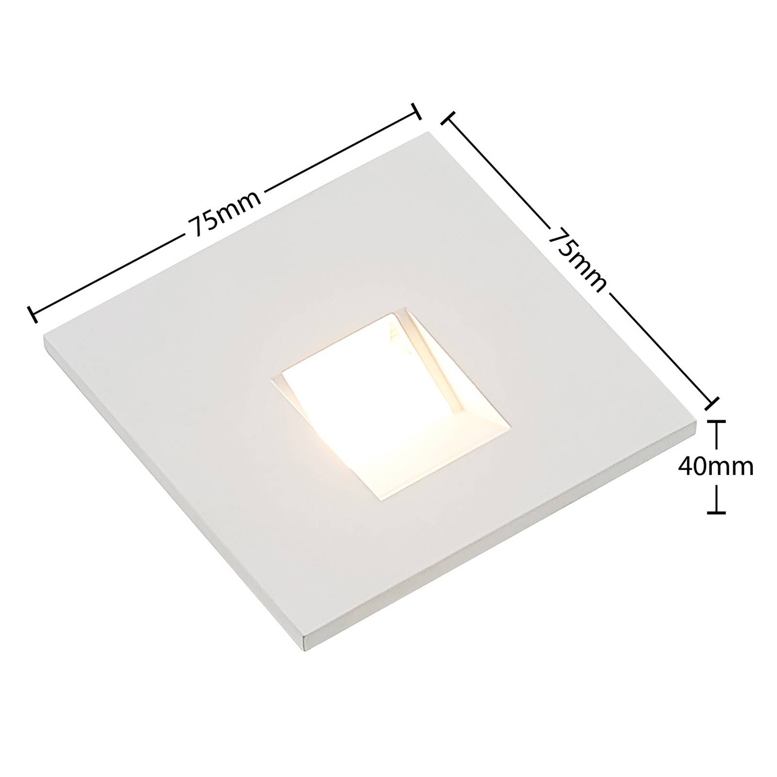 Witte LED wandinbouwarmatuur Vexi in vierkant design, vervaardigd uit aluminium Als u op zoek bent naar een eenvoudige LED-wandinbouwarmatuur, zult u met Vexi niet teleurgesteld zijn. Hij is gemaakt van aluminium en verdwijnt bijna volledig in de muur, zodat alleen een slanke, vierkante plaat op het oppervlak overblijft. In het midden hiervan bevinden zich vast geïnstalleerde LED’s die een betrouwbare verlichting genereren en waarvan de lichtkleur met behulp van een dipswitch kan worden aangepast (2.700 K, 3.000 K en 4.000 K). Vexi is bijzonder geschikt voor het verlichten van een gang of trap en zorgt voor voldoende verlichting om struikelgevaar te voorkomen. Indien gewenst kan de wandinbouwlamp worden gecombineerd met andere armaturen uit haar serie om een samenhangende totaalindruk te creëren. – CCT – Doorvoerbedrading mogelijk