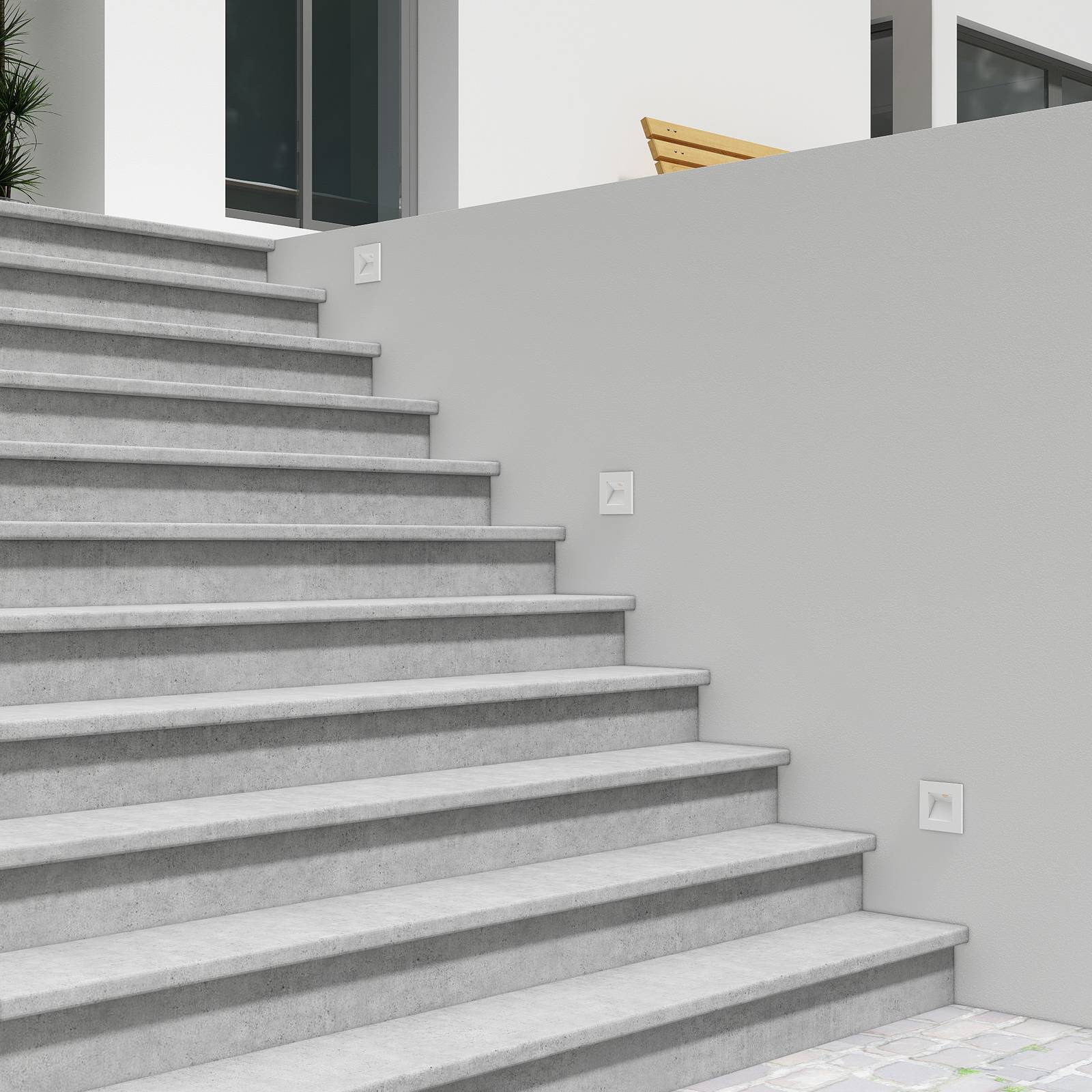 Effen wandinbouwarmatuur Zamo van aluminium in witte kleurstelling Zamo is gemaakt van aluminium en heeft een hoekige vorm. Het eenvoudige ontwerp wordt afgerond met een wit kleurenschema dat eenvoudige accenten zet op vlakke wanden. Het lichaam van de wandinbouwarmatuur verdwijnt bijna volledig in de wand, alleen de kop blijft aan het oppervlak. Bovendien kan het worden uitgerust met passende lichtbronnen, die een vrije keuze van lichtkleur en aanpassing van de verlichting aan persoonlijke behoeften mogelijk maken. De Zamo inbouw wandarmatuur heeft een IP65 beschermingsgraad, wat betekent dat ze aantoonbaar beschermd is tegen stof en waterstralen. Daarom kan hij ook buiten worden geïnstalleerd.