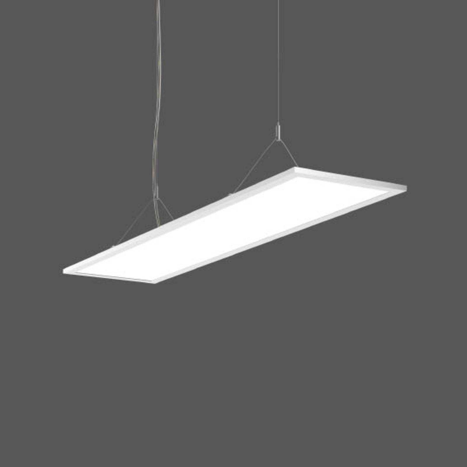 Sidelite ECO LED pendelarmatuur in rechthoekige vorm met opalen afdekkingMet de Sidelite ECO pendelarmatuur kan in kantoren of vergaderruimtes een nauwelijks zuiniger en vooruitstrevender lichtwereld worden gecreëerd. De pendelarmatuur straalt een uitzonderlijk helder en homogeen licht uit, wat ze te danken heeft aan de RZB zijlichttechnologie die het armatuurlichaam door middel van zijdelingse lichtinjectie voedt en zo hoogwaardig en helder licht genereert.De rechthoekige armatuur met een wit gepoedercoat aluminium frame en een opaalwitte diffuser heeft een zeer vlakke vormgeving en lijkt dankzij de filigrane 2-punts stalen kabelophanging bijna te zweven in de ruimte. De diffuser en lichtgeleider van het armatuur zijn gemaakt van niet-vergelende kunststof (PMMA).Het pendelarmatuur is uitgerust met de MultiLumen-functie, de lichtopbrengst kan in vier fasen worden aangepast via twee controllers die op het armatuur zijn geïnstalleerd.