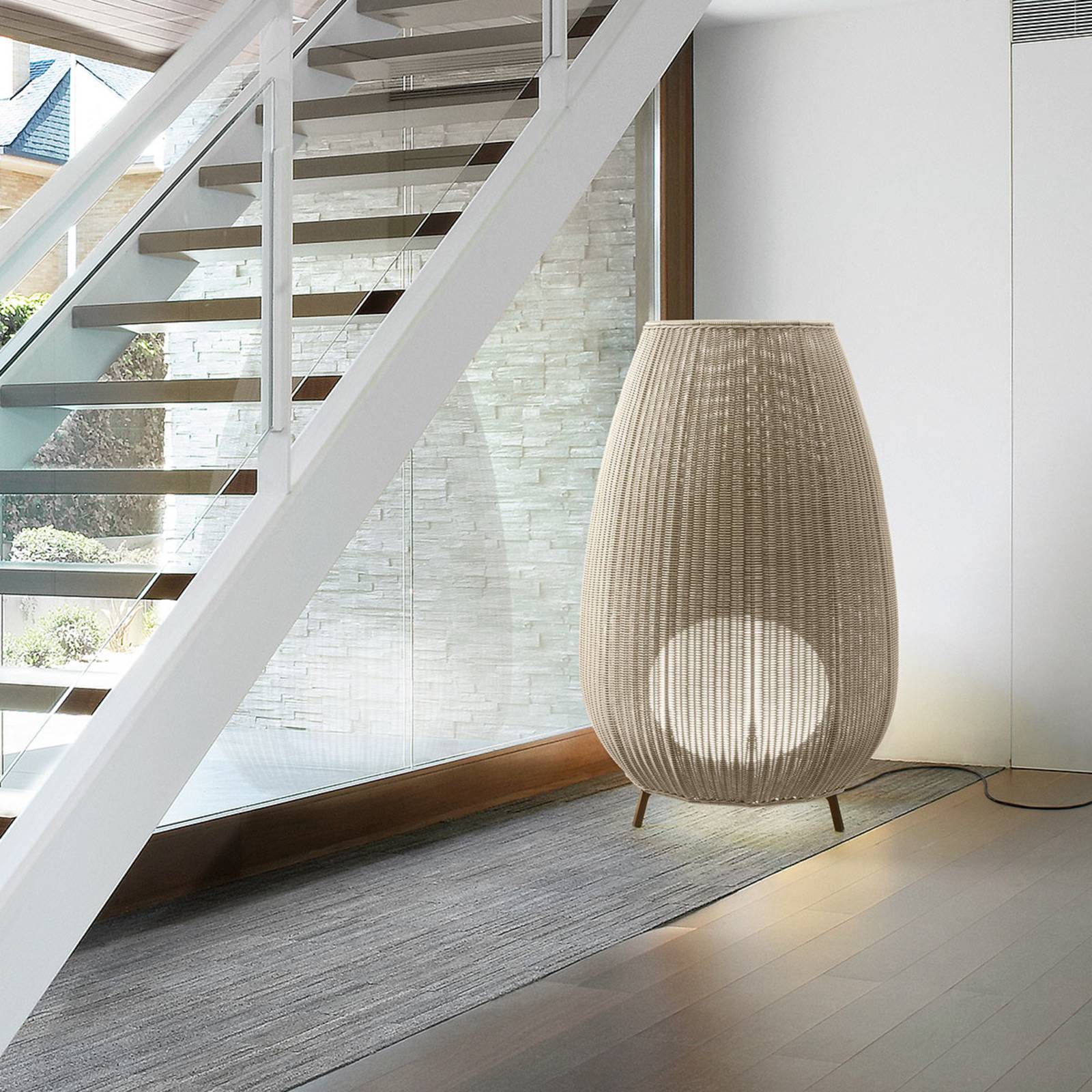 Atmosferische terraslamp Amphora 03 in rotan-ontwerp Een stijlvol vormgegeven buitenruimte van een idyllisch restaurant of café – precies hier is de ideale plek voor de in Spanje vervaardigde vloerlamp Amphora 03. Maar ook royale particuliere buitenvoorzieningen en natuurlijk ook interieurs worden verrijkt door de in een waardevolle rotanlook ontworpen armatuur. Ontworpen om de omgeving te vullen met een warm licht, Amphora 03 creëert een mediterrane sfeer om zich goed te voelen. Het bolvormige lichaam van de lamp werd met de hand geweven uit een synthetisch vlechtwerk in het hoofdkwartier van Bover in Barcelona. In het midden van het vlechtwerk ligt een ellips van polyethyleen, waarin de twee lichtbronnen zich bevinden – perfect beschermd tegen alle weersomstandigheden dankzij de IP65-beschermingsgraad. Vanaf de ellips verspreidt een veelzijdig lichtval zich door het vlechtwerk naar de omgeving van het armatuur. De naam en de vorm van deze decoratieve armatuur doen denken aan antieke amforen, die al zeer populair waren in de Romeinse tijd en in het oude Griekenland – niet alleen als transportcontainers, maar ook voor decoratieve doeleinden. Sinds 1996 is Joana Bover, de oprichtster van de Spaanse armatuurfabrikant Bover, trouw gebleven aan haar oorspronkelijke visie. Altijd met behoud van de balans tussen kwaliteit en vorm, hoogwaardige verlichtingsobject worden vandaag de dag nog steeds met de hand gemaakt in Barcelona.