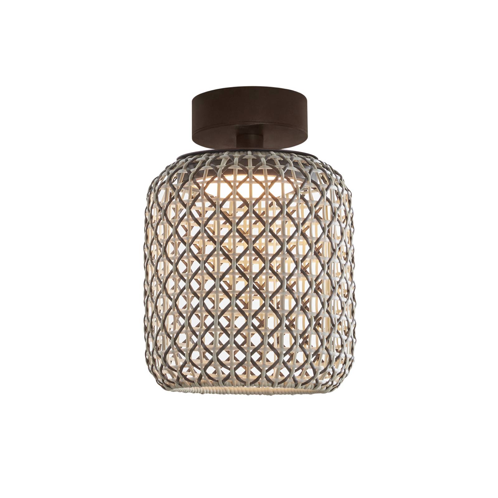 LED plafondlamp Nans voor buitenDe armaturen van de serie Nans zijn ontworpen door Joana Bover, de oprichter van het gelijknamige bedrijf uit Barcelona. Met haar ontwerpen wil de ontwerpster de lichtheid van de mediterrane levensstijl overbrengen. De plafondlamp Nans heeft een kap die gemaakt is van een rieten stof, die bestaat uit synthetische vezels. De beschermingsklasse IP54 beschermt de lamp tegen vocht en stof, zodat deze zonder problemen buiten gebruikt kan worden, bijvoorbeeld in paviljoens, op het terras of het balkon.