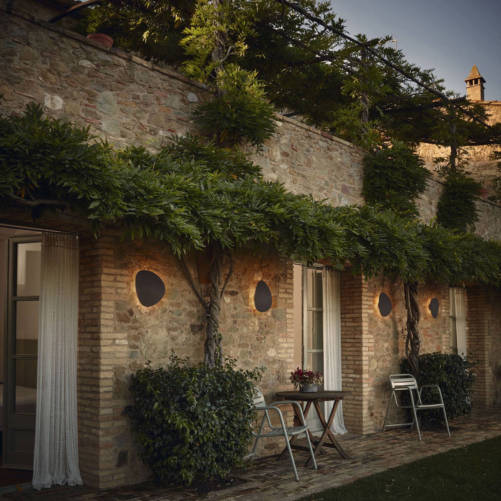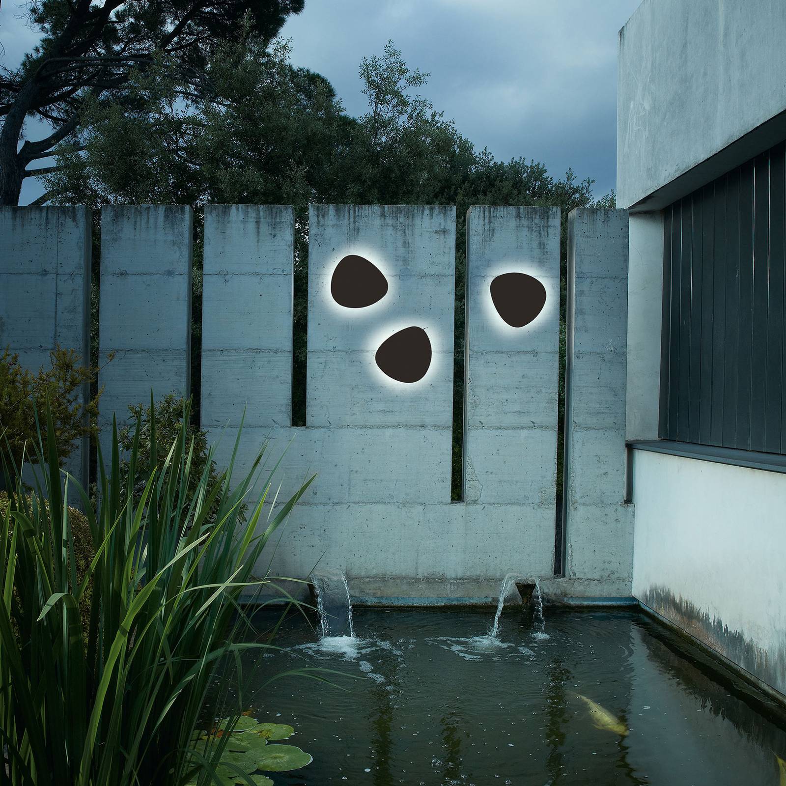 LED-wandarmatuur Tria van aluminium voor buitengebruik De armatuurcreaties van de Spaanse merkfabrikant Bover staan enerzijds voor uitstekende kwaliteit en anderzijds voor eenvoudige ontwerpen die nooit hun actualiteit verliezen. De Tria buitenwandlamp van ontwerper Rubén Saldaña combineert ook precies deze attributen. Het heeft een aluminium plaat met een organische vorm die doet denken aan stenen, zoals die van de zee. Achter deze plaat gaat de modernste LED-technologie schuil die een warm wit licht genereert dat zich rond het armatuur verspreidt. De plaat kan ook 350° gedraaid worden, waardoor het spel van licht en schaduw verandert. Tria inspireert met een minimalistische uitstraling, zonder storende details, die zich vermengt met een breed scala aan stijlen – van modern tot rustiek. Opmerking: De wandlamp is dimbaar (TRIAC).