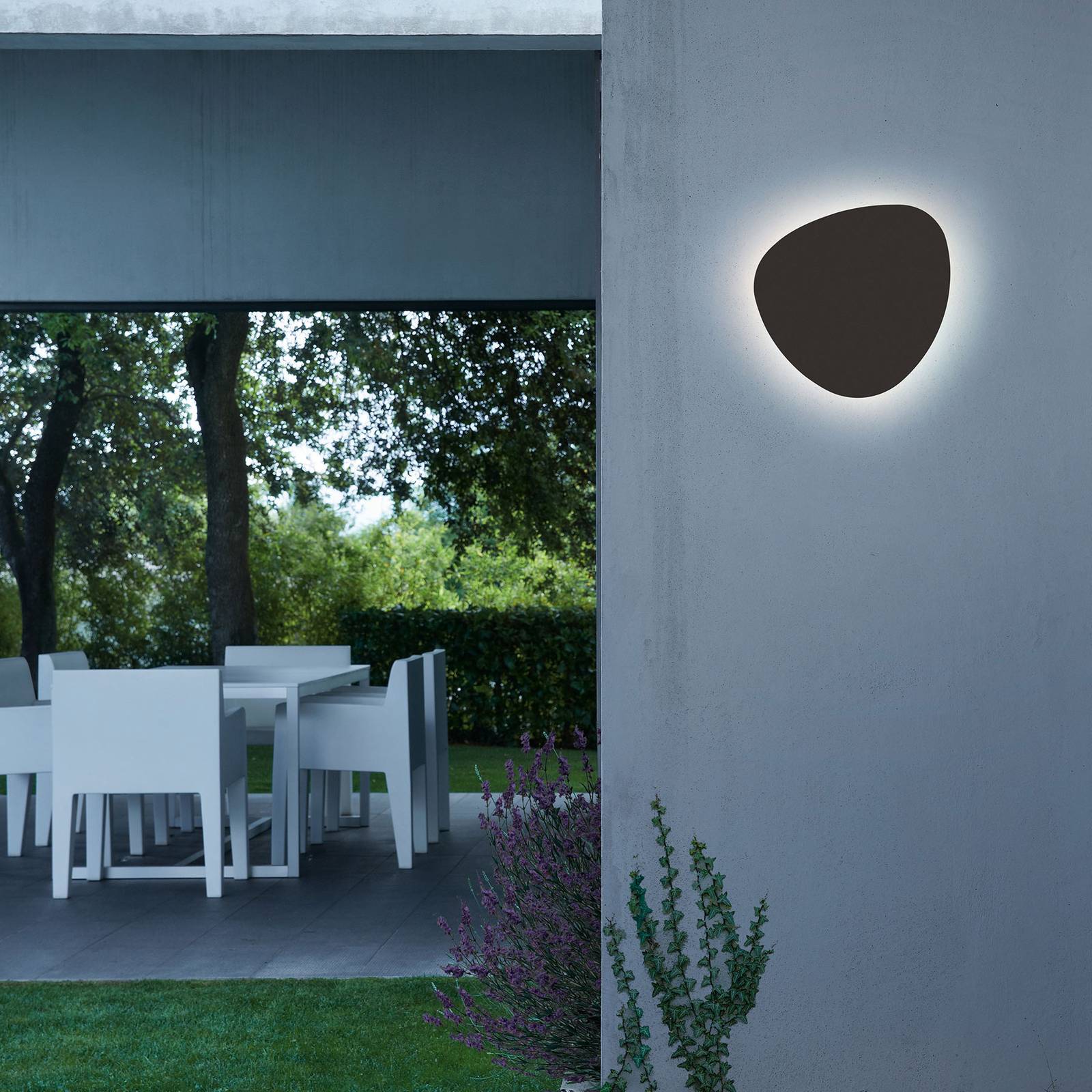 LED-wandarmatuur Tria van aluminium voor buitengebruik De armatuurcreaties van de Spaanse merkfabrikant Bover staan enerzijds voor uitstekende kwaliteit en anderzijds voor eenvoudige ontwerpen die nooit hun actualiteit verliezen. De Tria buitenwandlamp van ontwerper Rubén Saldaña combineert ook precies deze attributen. Het heeft een aluminium plaat met een organische vorm die doet denken aan stenen, zoals die van de zee. Achter deze plaat gaat de modernste LED-technologie schuil die een warm wit licht genereert dat zich rond het armatuur verspreidt. De plaat kan ook 350° gedraaid worden, waardoor het spel van licht en schaduw verandert. Het minimalistische uiterlijk van Tria, zonder storende details, maakt het een heerlijke aanvulling op een breed scala aan stijlen – van modern tot rustiek. Opmerking: De wandlamp is dimbaar (TRIAC).
