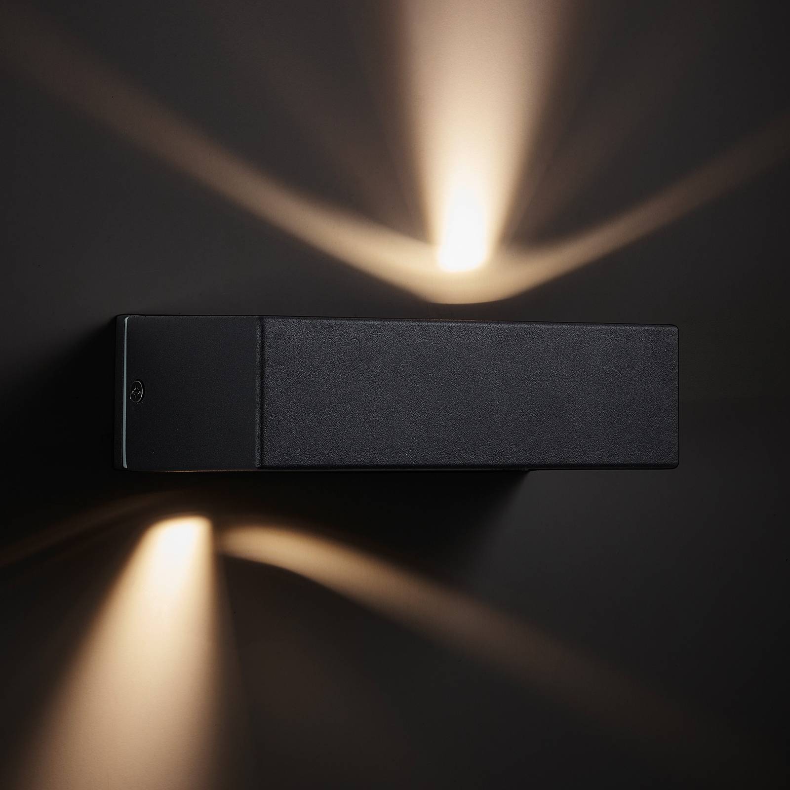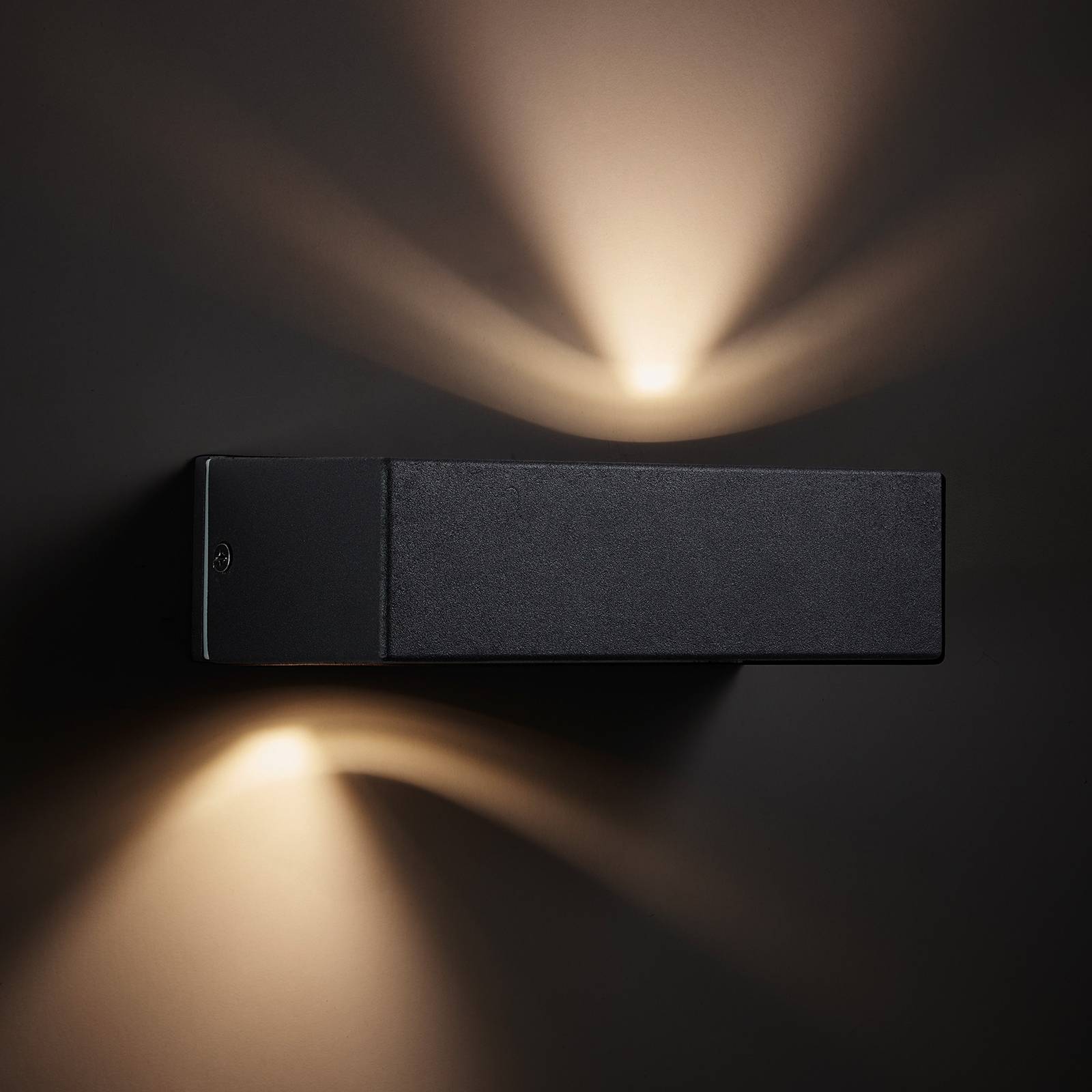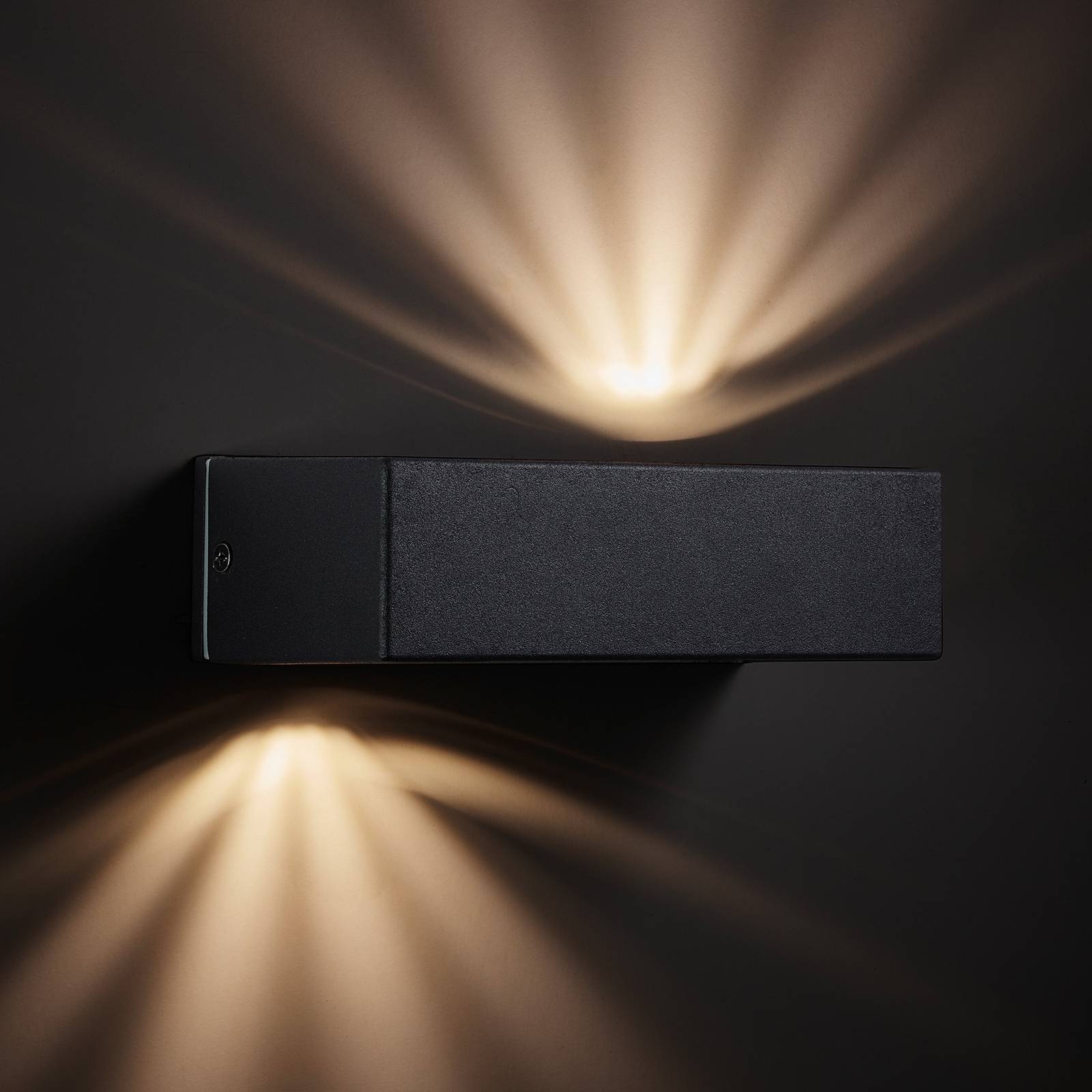 De 2-lamps LED buitenwandlamp Abbot verlicht effectief elke huismuur. Eén lichtbron is naar boven gericht en één naar beneden, waardoor een indrukwekkend spel van licht en schaduw ontstaat.