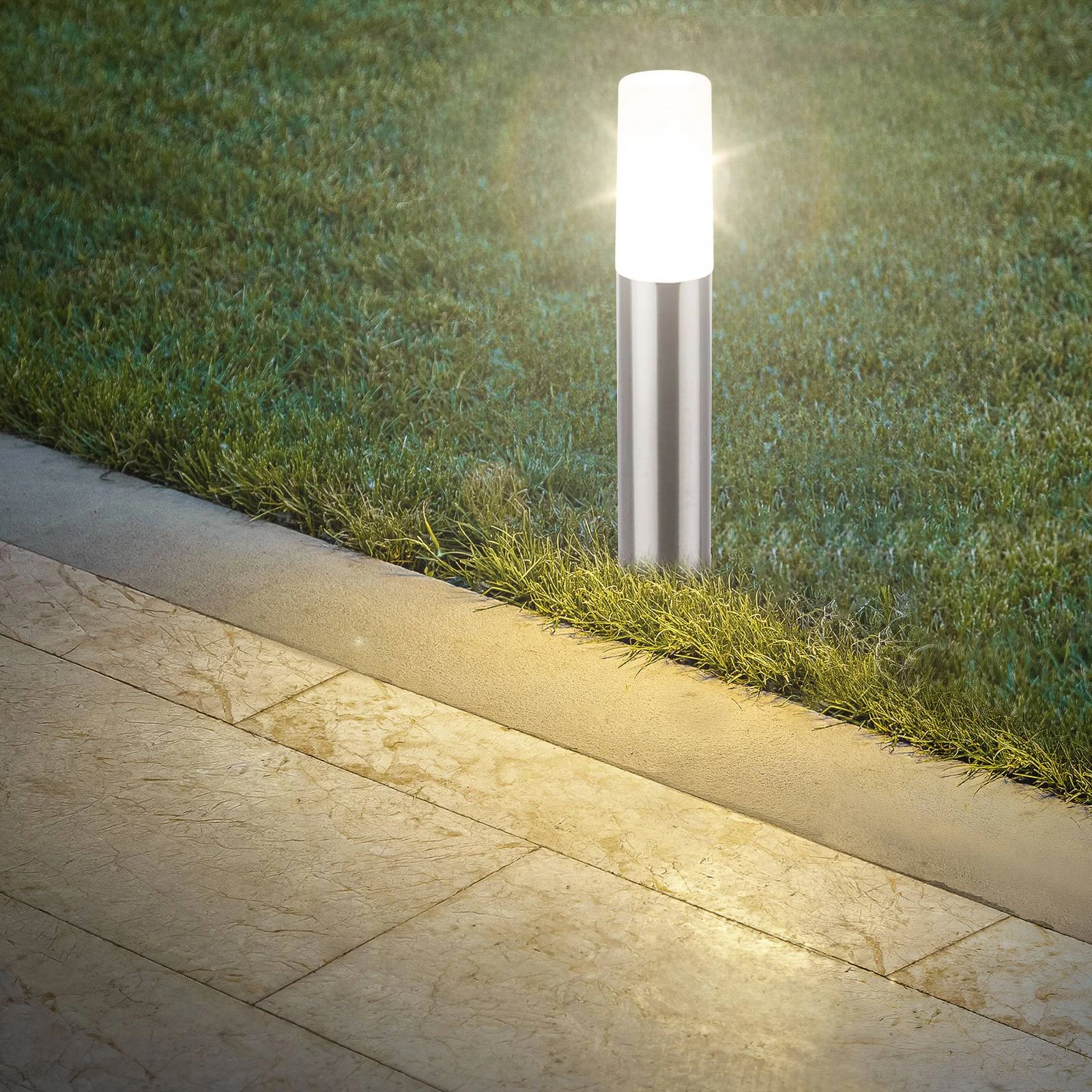Uitbreidingsset voor 12 V buitenverlichting – drie roestvrijstalen LED grondspies lampen Deze set met drie warmwitte LED grondspies lampen wordt gebruikt om de 12 V buitenlamp van Briloner uit te breiden. De cilindrische lampen hebben een roestvrijstalen behuizing en een gesatineerde kunststof diffuser. De grondspikes maken het eenvoudig om de lampen te verankeren in onverharde oppervlakken. De lampen hebben geschikte aansluitkabels met stekkerverbindingen voor het 12 V-systeem. Een buitenstekkertransformator voor 230 V aansluiting op het stopcontact is niet inbegrepen – een startset (zie accessoires) is vereist – Uitbreidingsset met drie lampen en 12 V aansluitkabels – Exclusief stekkertransformator – Beschermingsgraad: IP44