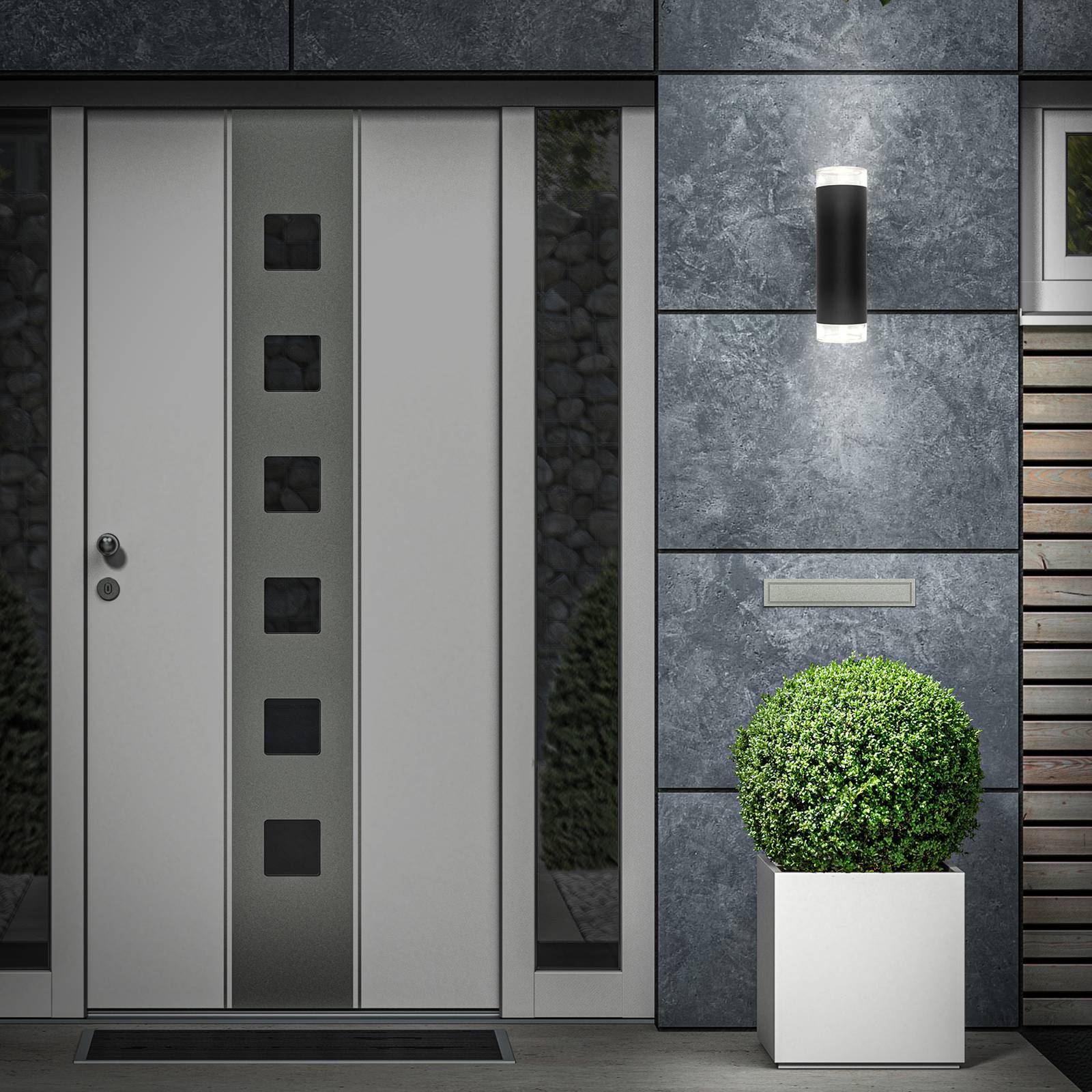 LED-buitenwandarmatuur 3072, naar boven en beneden schijnendDe gevel van huizen wordt met deze LED-buitenwandarmatuur van metaal met diffusors van helder kunststof naar boven en beneden toe met een effectief licht verlicht. Rechts en links van de ingang of aan de gevel rondom het huis zet de armatuur mooie lichtaccenten en verlicht de omgeving met universeel wit licht. De LED-lampen worden meegeleverd en kunnen worden vervangen. – Beschermingsklasse IP44