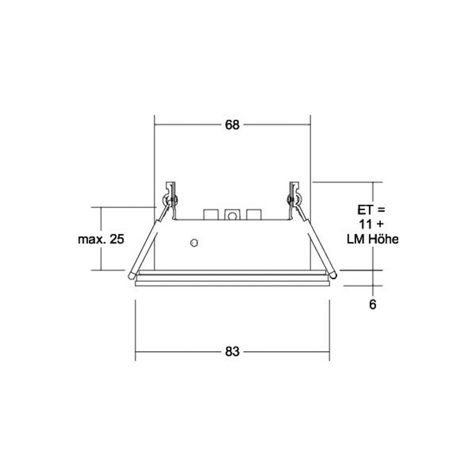 Cover-Up-R – rond inbouwframe voor downlight voor gebruik met MR16 LED module Het Cover-Up-R inbouwframe kan worden aangevuld met MR16 LED modules van BRUMBERG, wat resulteert in een ronde inbouwdownlight met de gewenste verlichtingseigenschappen. De behuizing is gemaakt van staal en aluminium en heeft een heldere glazen afdekking – exclusieve lichtbron en driver – geschikt voor BRUMBERG MR16 LED modules met max. 14 W – beschermingsklasse: IP44 aan de ruimtezijde, IP20 aan de achterzijde – inbouwdiepte: 1,1 cm hoogte van de LED module – dimbaarheid is afhankelijk van de keuze van LED module en driver – gereedschapsloze snelle montage met bijgeleverde veren