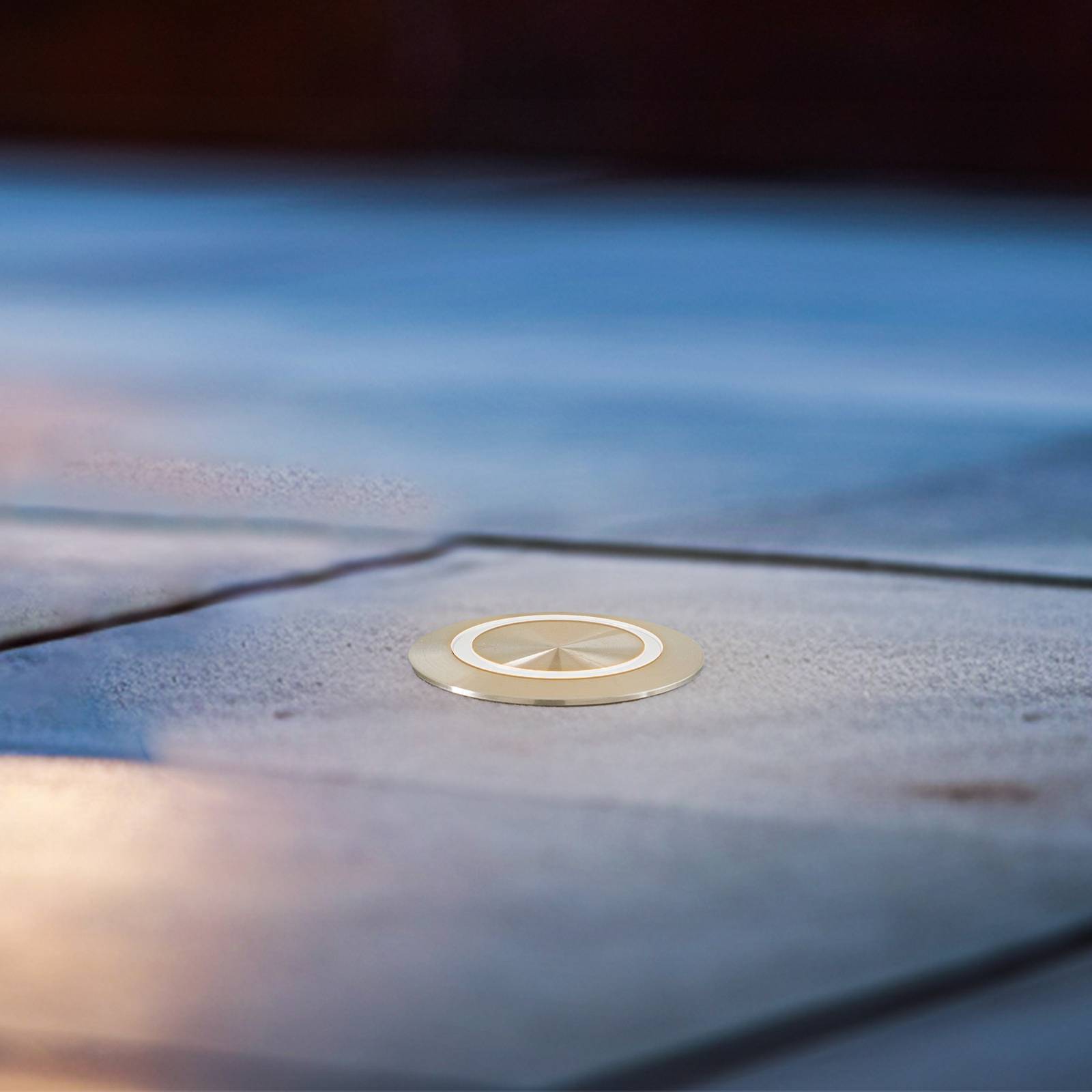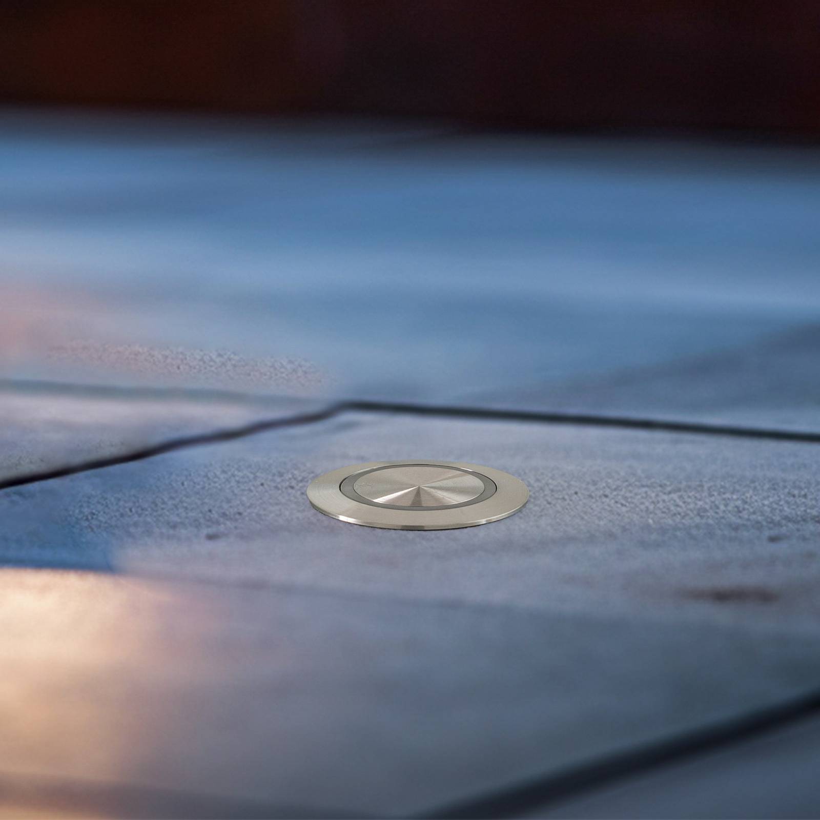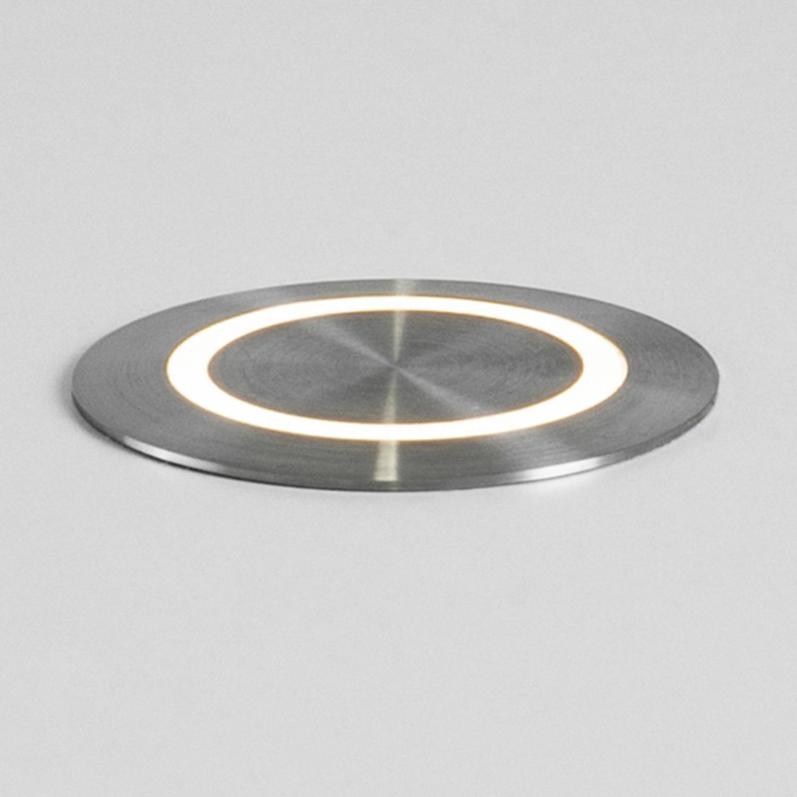 LED-inbouw vloerlamp Hybrid Mini, lichtuitstraling ringvormig De LED-vloerinbouwarmatuur Hybride Mini is hier verkrijgbaar in een versie met filigrane, ringvormige lichtuitstraling. De opaalwitte ringvormige diffusor is verzonken in de ronde behuizing van V4A roestvrij staal. Ook deze is gemaakt van speciaal, resistent chroomnikkelstaal van roestvrije kwaliteit, alsmede van aluminium. Dankzij de buitengewone stijl kan hij perfect worden gebruikt als accentverlichting of ook als effectverlichting op gevels. Natuurlijk is de Hybride Mini bodeminbouwarmatuur ook uitstekend geschikt voor klassiek buitengebruik als oriëntatiehulp aan de rand van het pad. Een geschikte LED-voedingseenheid is afzonderlijk verkrijgbaar als accessoire. – Beschermingsklasse IP65 (beschermd tegen waterstralen en stofdicht) – Met 30 cm aansluitkabel – zonder voorschakelapparatuur