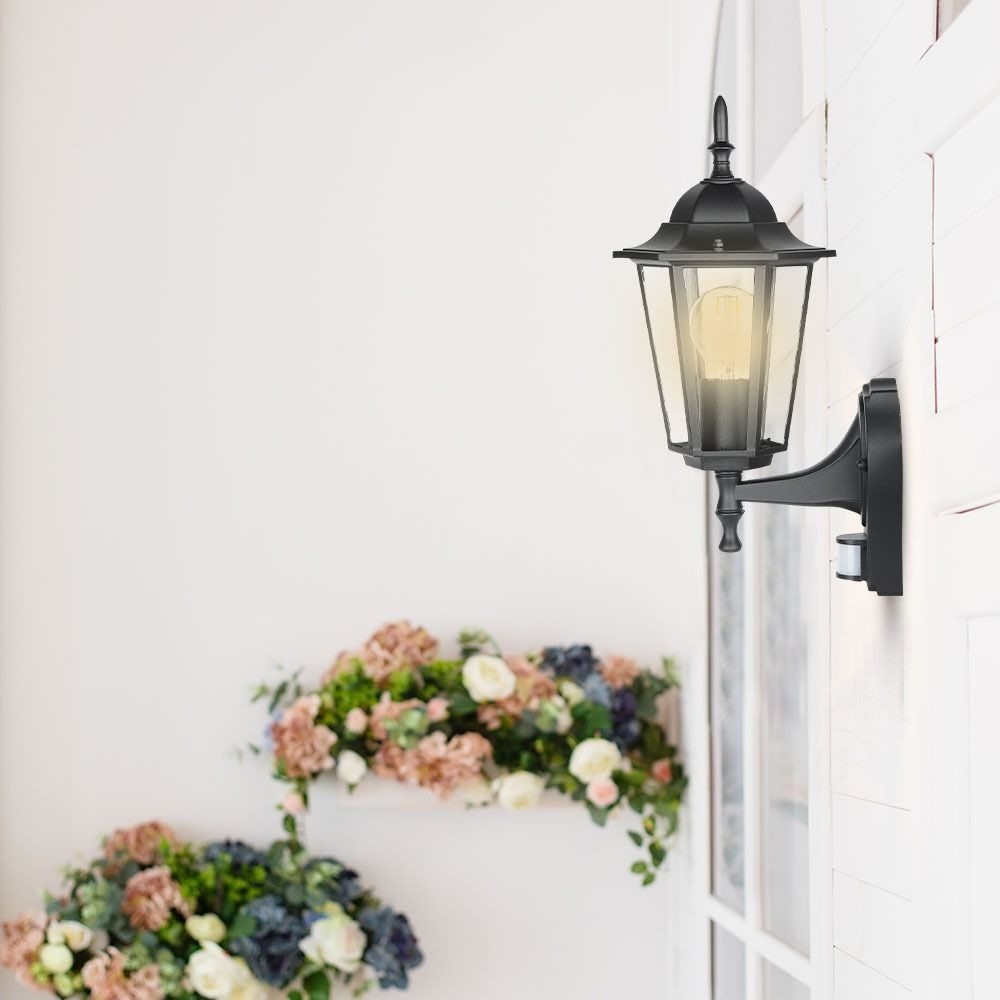 Buitenlamp klassiek mat zwart met bewegingsmelder IP44 en drie jaar garantie