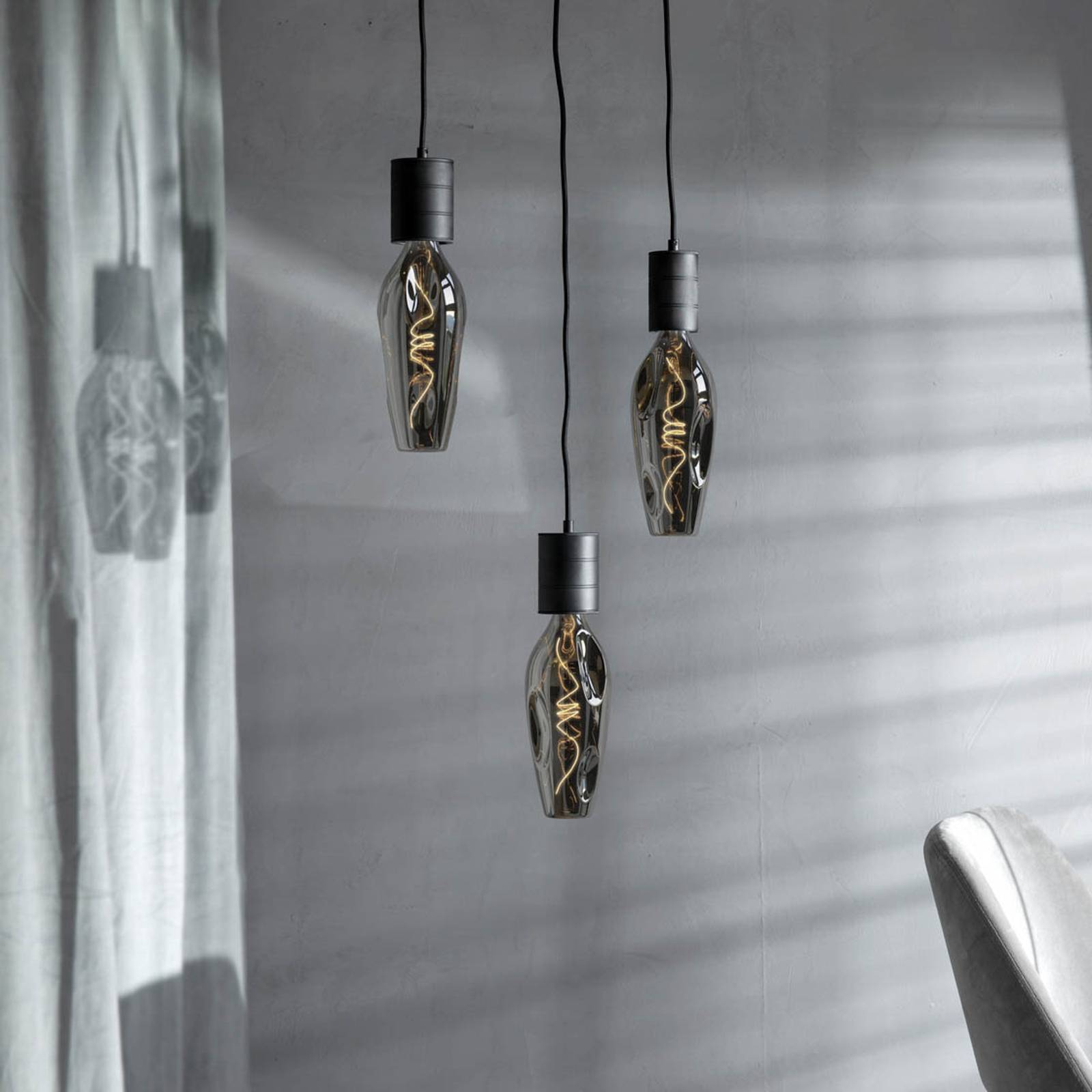 LED filamentlamp Barcelona E27 4W in extravagante vorm, dimbaarDeze kunstig ontworpen LED lamp met een futuristisch tintje maakt van elke lamphouder iets bijzonders. De reflecterende, titaniumkleurige coating tilt niet alleen het bijzondere ontwerp naar een bijzonder niveau, maar zorgt door reflecties en spiegeling ook voor een uniek lichteffect van de daarin kunstig aangebrachte LED-filamenten.- dimbaar met LED-dimmer (niet inbegrepen).