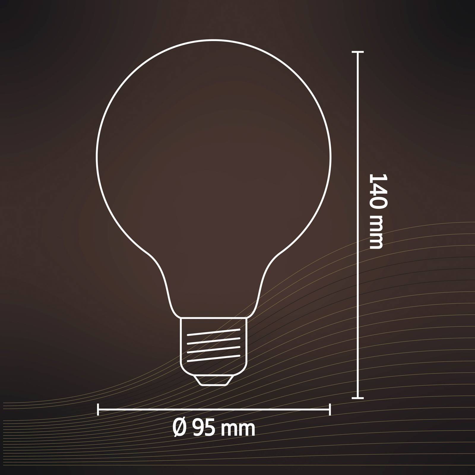 LED globe lamp E27 G95 4,5W 2.100K goud dimbaarIn het goudkleurige glas van deze LED globe lamp zijn rechte LED filamenten decoratief gerangschikt. Ze stralen een extreem warm licht van 2.100K uit. In onbeschaduwde armaturen in de woonruimte creëert deze LED globe lamp een warme en gezellige sfeer.