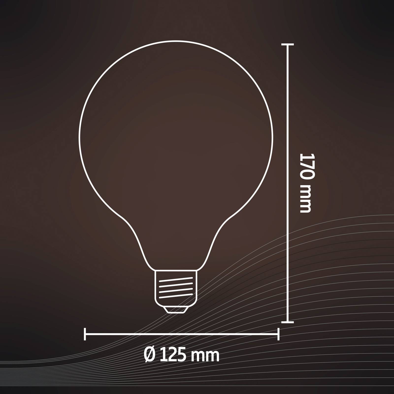 LED-glaslamp E27 4W G125 Top met matzwarte spiegelende kopVerblindingsvrij, indirect licht met een bijzonder warme lichtkleur straalt deze LED-lamp uit dankzij de matzwarte spiegelende kop. Een ideale keuze voor onbeschaduwde tafel-, vloer- of pendelarmaturen.- Dimbaar met een externe LED-dimmer (niet inbegrepen)