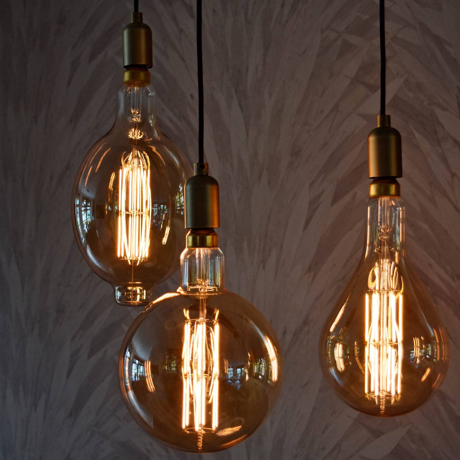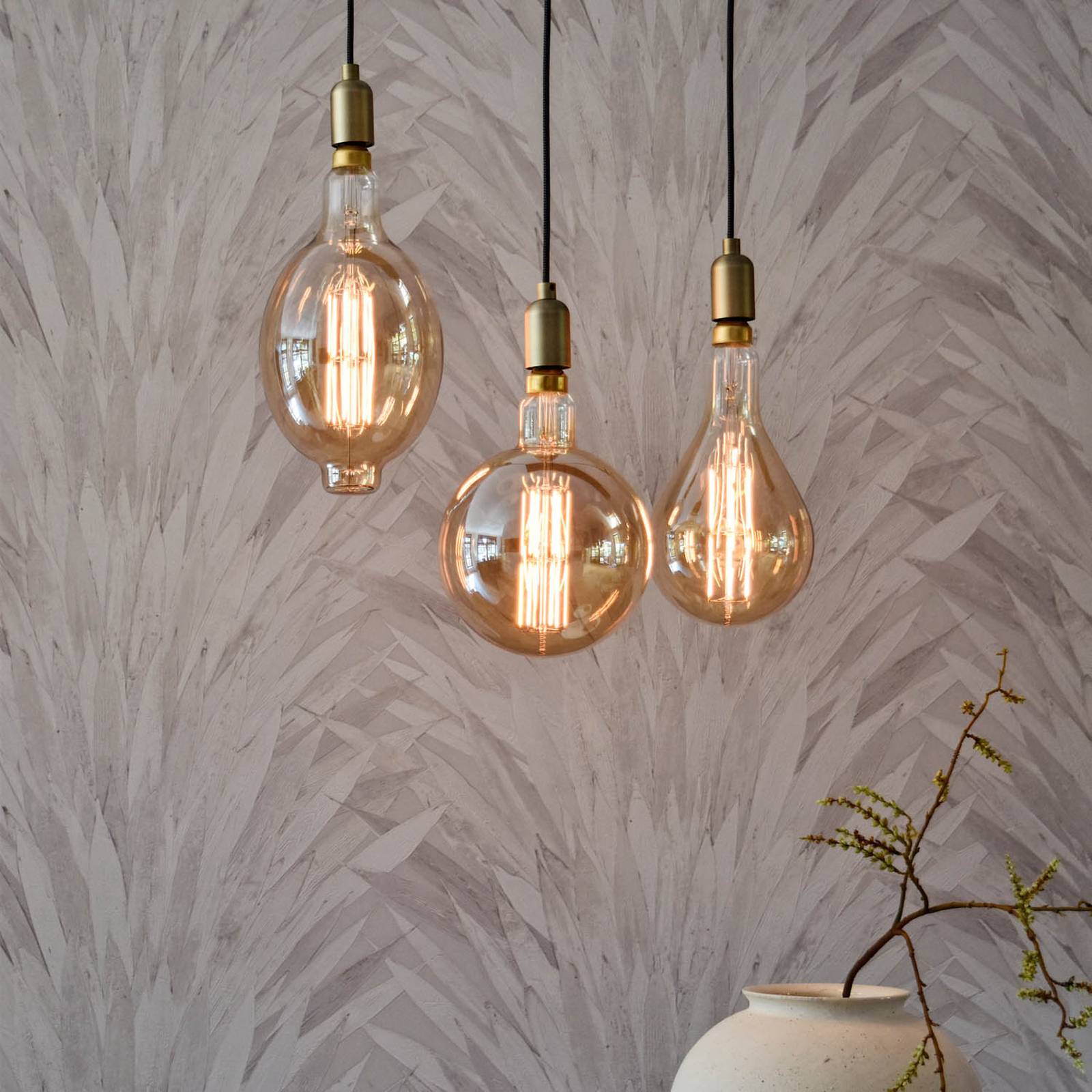 E27 LED globe lamp Megaglobe High Lumen met warm wit licht, 10,5 W, 1.100 lm, dimbaarDe Megaglobe High Lumen LED lamp straalt zijn warm witte licht krachtig uit. Met slechts 10,5 W haalt hij ondanks zijn gouden tint 1.100 lumen. Bovendien kan de intensiteit worden gedimd. Visueel hoeft deze globe lamp zich ook niet te verstoppen. En dat zou moeilijk zijn met zijn indrukwekkende afmetingen. In plaats daarvan is ze ideaal voor gebruik in open armaturen en armaturen zonder kap. Hier overtuigt ze zowel door haar goudkleurige oppervlak als door haar zichtbare gloeidraden.