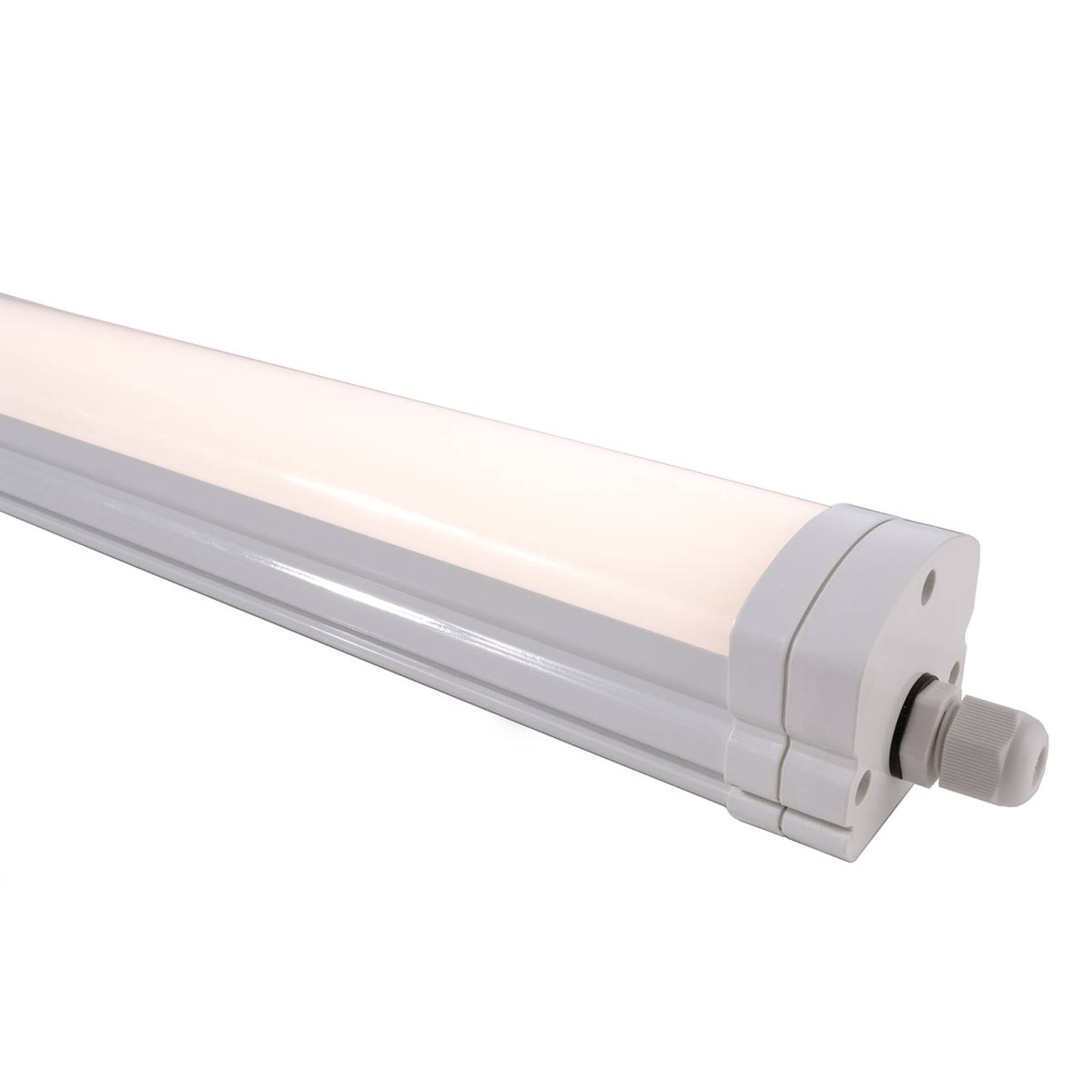 159,8 cm lange LED vochtbestendige armatuur Tri ProofDe LED vochtbestendige armatuur Tri Proof is volledig uit kunststof vervaardigd. De LED-plafondarmatuur voor vochtige ruimtes, industriehallen, garages, werkplaatsen enz. kan aan het plafond of de wand worden gemonteerd, straalt universeel wit licht uit en kan dankzij de aansluitklemmen aan beide zijden aaneengeregen worden (maximaal 40 armaturen).- Stralingshoek 120°- maximaal 40 armaturen kunnen aaneengeregen worden- eenvoudige elektrische aansluiting met steekklem – geschikt voor verdere bedrading