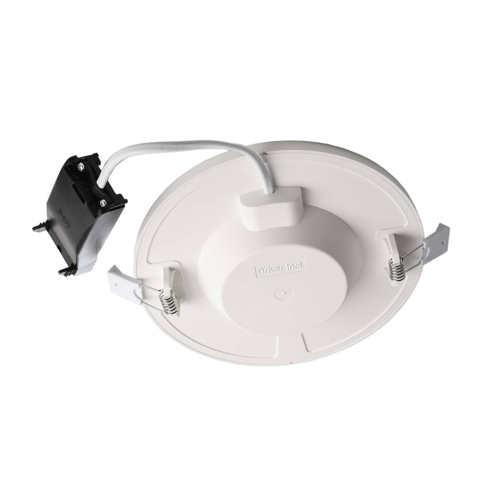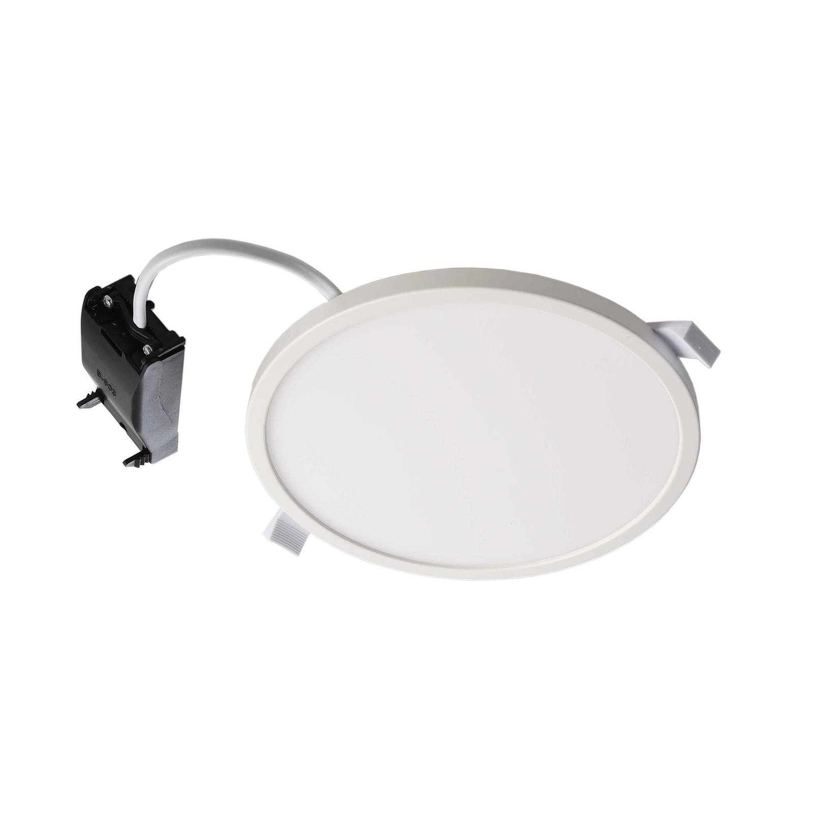 Witte LED-inbouwarmatuur Alya: lichtkleur warm witDeze ronde LED-plafondarmatuur, die in uitgeschakelde toestand nauwelijks opvalt, kan worden gebruikt om privé- of commerciële ruimtes adequaat te verlichten.De door ALya geïnstalleerde LED’s stralen in een zacht warm wit, wat in elke ruimte een gezellige sfeer creëert. De lichtsterkte kan worden geregeld via een externe dimmer (fase-hoek of fase-sectie). De benodigde LED-voedingseenheid is bij de levering inbegrepen.- Stralingshoek 110°- Bedrijfsmodus: constante spanning- Bedrijfstemperatuur: -20 °C tot 25 °C- Vermogensfactor PF: 0,90- Lichtsterkte: 194 cd