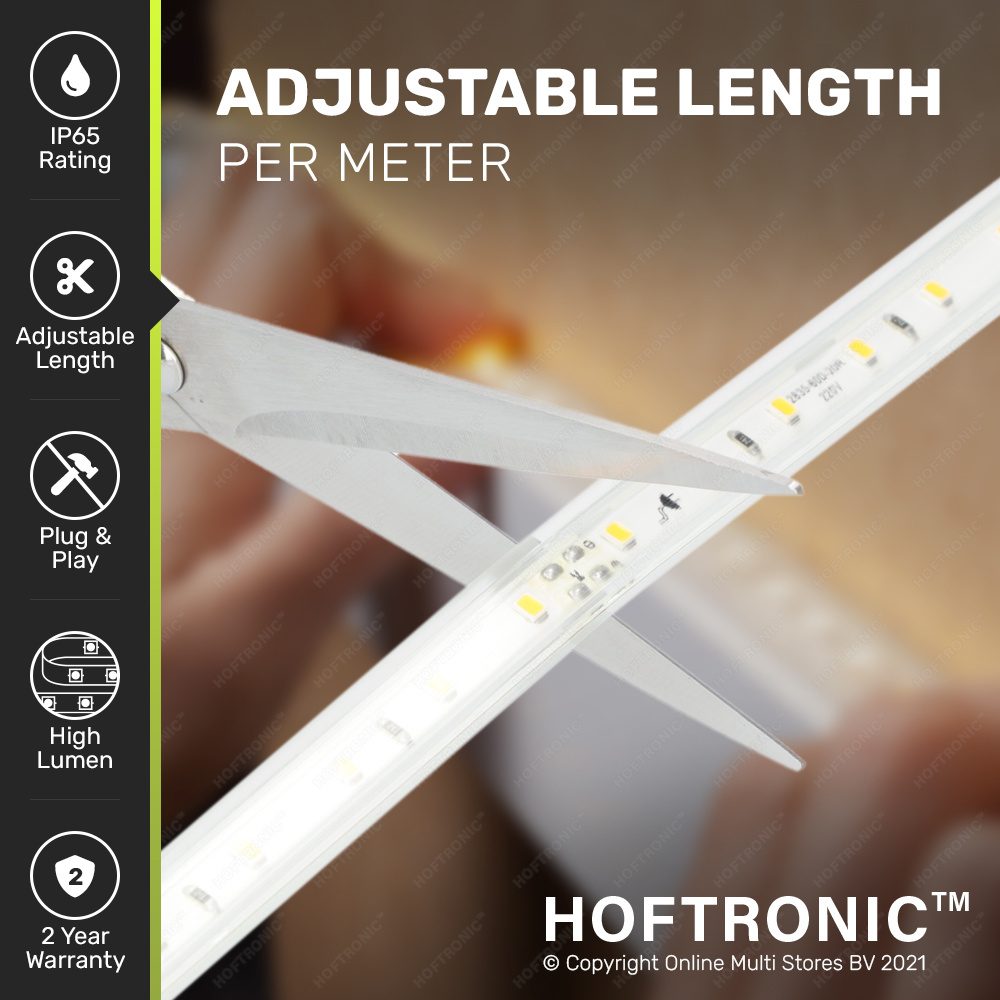De Flex60 LED strips zijn inkortbaar per meter. Dit kun je moeiteloos aflezen op de strip via de aangegeven knip lijntjes. Zorg er dan wel voor dat je de eindstuk van de strip weer waterdicht maakt met een eindstuk welke je weer vast dient te lijmen met de bijgeleverde lijm.