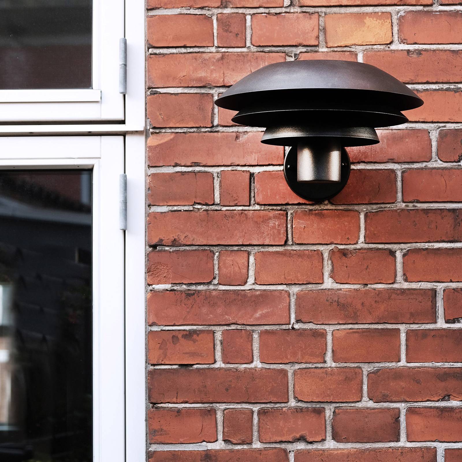 Zwarte roestvrij stalen buiten wandlamp DL Een duurzame lichtbron voor de gevel is de DL buitenwandlamp, die gemaakt is van roestvrij staal en een afwerking in mat zwart heeft. Kenmerkend voor de DL-armatuurserie is het ontwerp van de lampenkap, die bestaat uit drie boven elkaar geplaatste metalen elementen. Deze vormgeving maakt de armatuur tot een blikvanger aan de gevel en zorgt bovendien voor een heel bijzonder lichteffect, omdat de lichtbron binnen door de spleten schijnt en door de afzonderlijke elementen op een interessante manier naar beneden wordt gericht. De DL-armatuurserie is de eerste buitenarmatuurserie van het Deense armaturenlabel Dyberg Larsen, een in 2016 opgericht bedrijf dat armaturen produceert voor binnen- en buitengebruik.