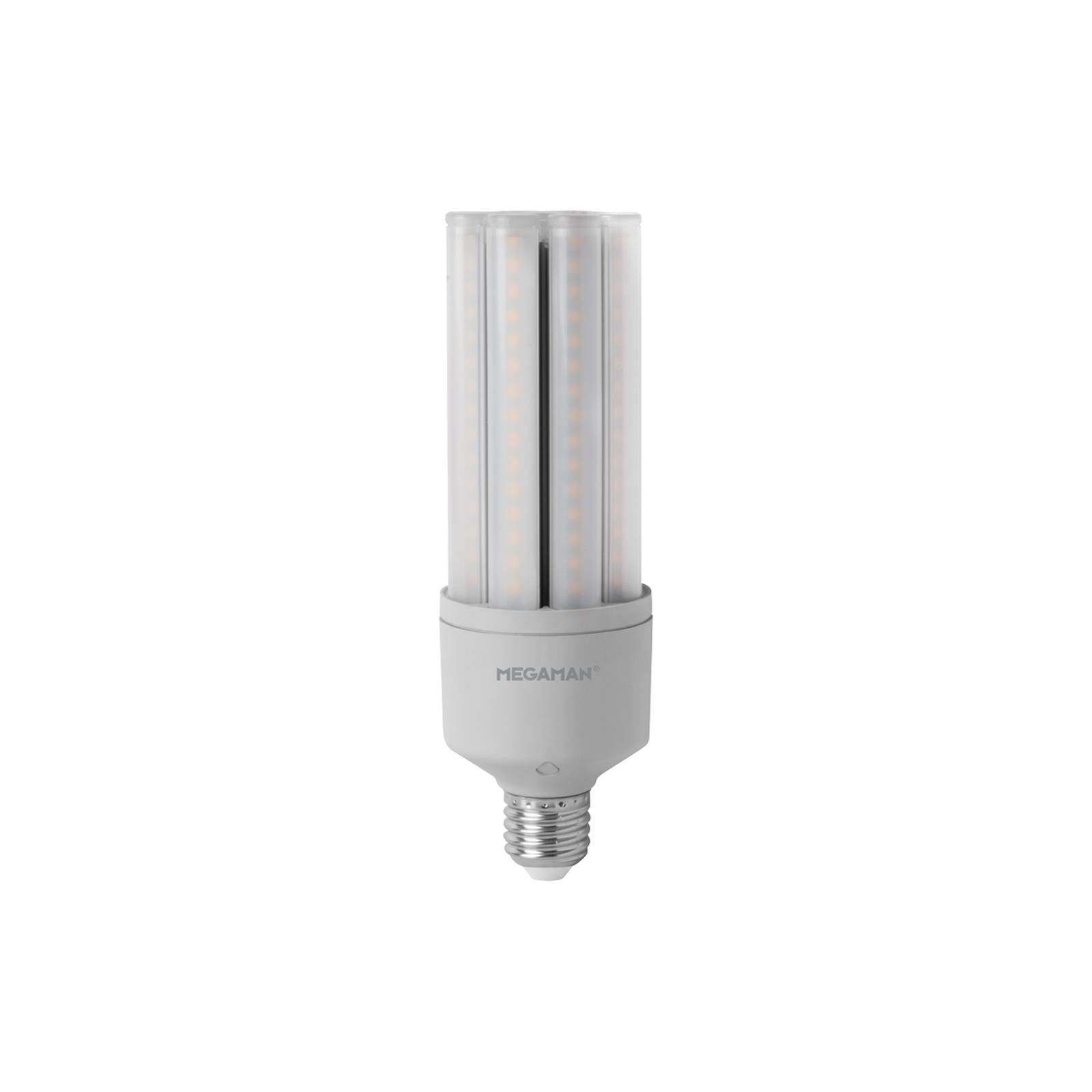 E27 29W LED Clusterlite MEGAMAN Professional – in 2 lichtkleuren Deze LED lichtbron is een ideale vervanging voor conventionele metaalhalogeenlampen en hogedrukkwiklampen dankzij de hoge energiebesparing tot 80% en de lange levensduur van 30.000 uur. De LED Clusterlite is geschikt voor zowel binnen- als buitengebruik. De beschermingsklasse wordt bepaald door het armatuur en moet minimaal voldoen aan IP44 voor buitengebruik. Eigenschappen: – energiebesparing tot 80% – geen opwarming, direct 100% lichtsterkte – extreem lange levensduur tot 30.000 uur – breed temperatuurbereik van – 30°C tot 40°C – tot maximaal 60°C omgevingstemperatuur in het armatuur, afhankelijk van de constructie en het volume van het armatuur – niet waterdicht – geschikt voor commerciële of industriële toepassingen (bijv. beurshallen, fabriekshallen, warenhuizen, reclameborden) – niet geschikt voor ruimteverlichting in huishoudens