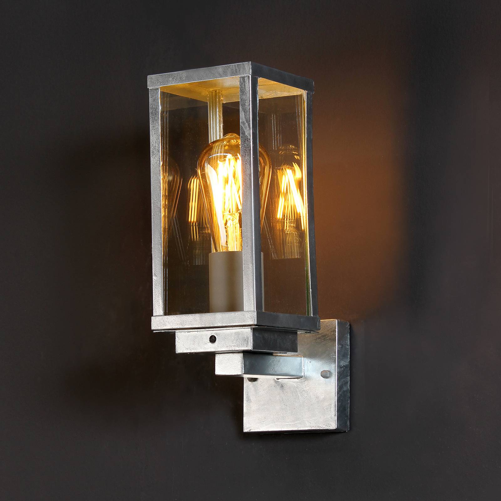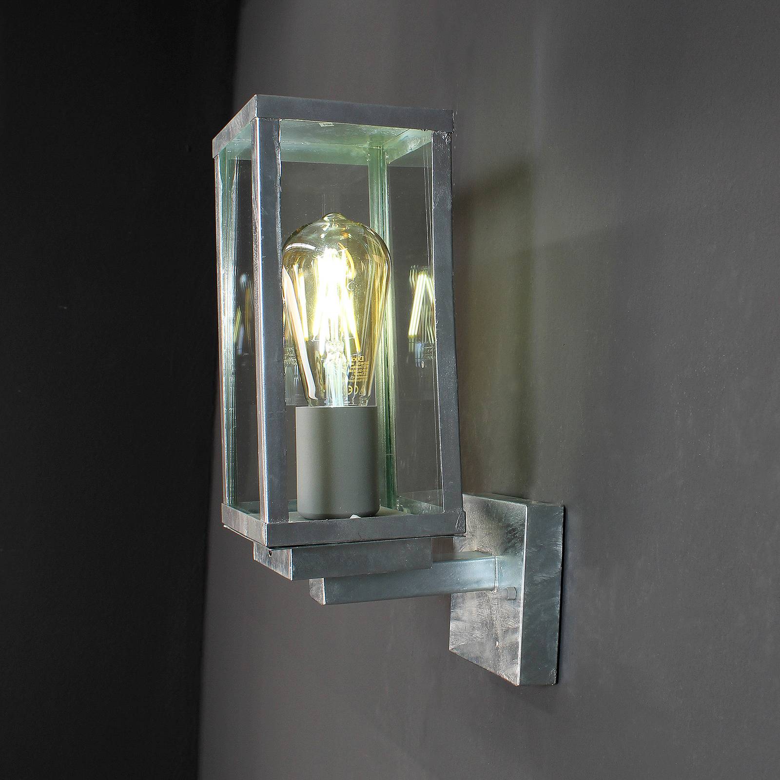 Karo buitenwandlamp met schakelbare schemersensor, IP44Het frame van de Karo buitenwandlamp is gemaakt van gegalvaniseerd spuitgietaluminium. Zijn kap is aangevuld met ruiten van helder glas, zodat het gebruik van een E27-lamp met zichtbare gloeidraden wordt aanbevolen (zie accessoires). De geïntegreerde schemersensor kan optioneel worden in- en uitgeschakeld via de ingebouwde schakelaar. Als de sensor is uitgeschakeld, kan Karo gewoon met de wandschakelaar worden in- en uitgeschakeld.Dankzij de IP44-beschermingsgraad is deze buitenwandlamp beschermd tegen spatwater en kan ze buiten worden gebruikt.