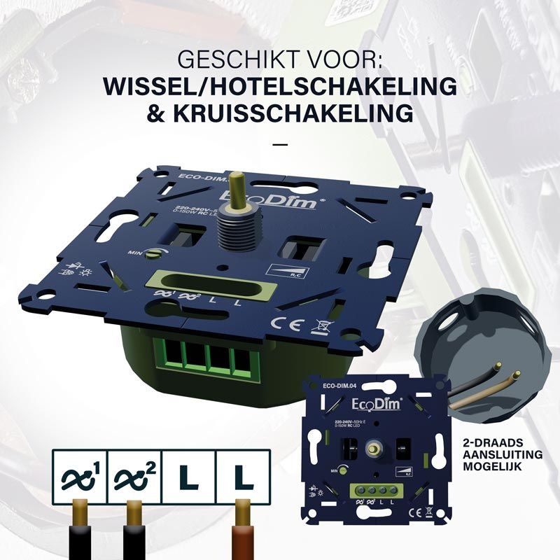De draaidimmer is te gebruiken in wissel/hotelschakeling met (bij het andere schakelpunt) een normale bedrade impulsdrukker.