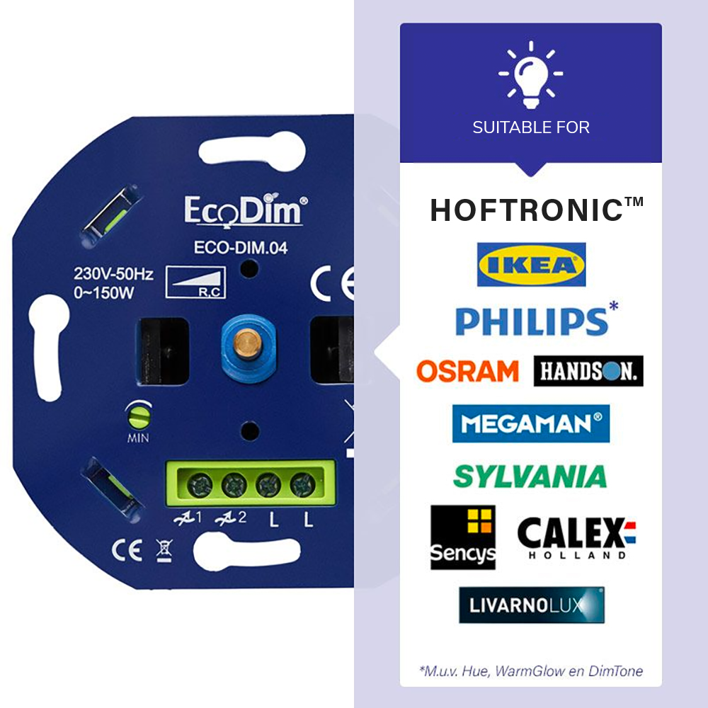 Dankzij de hoge klasse van deze elektronische smart dimmer kunnen alle led lampen ongemerkt gedimd worden. Geen zoemende dimmer of led lampen dus!