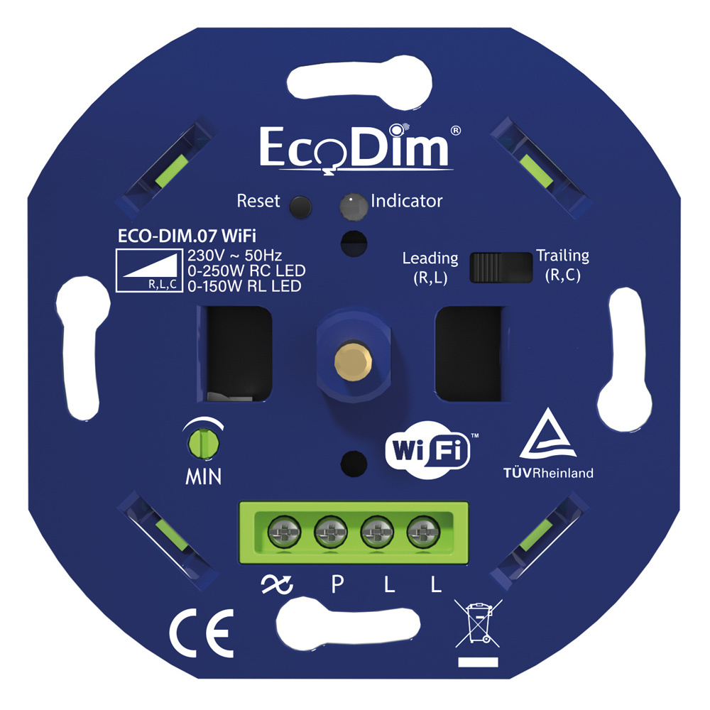 Ecodim Smart LED WiFi dimmer – 0-250 Watt – Druk-/Draaiknop – Fase afsnijding en aansnijding – Tuya based – ECO-DIM.07