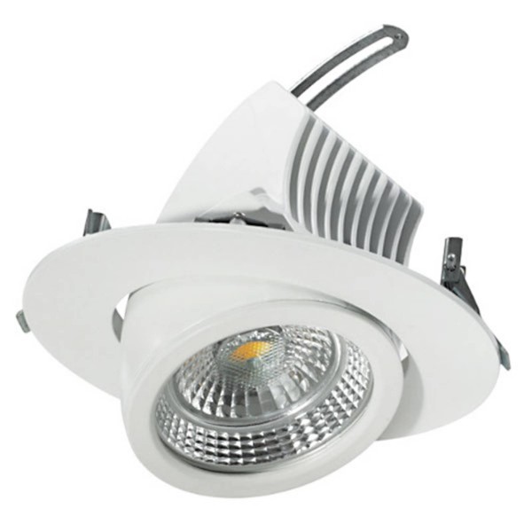 Zwenkbare LED-inbouwspots, rond met LED-driver Een perfecte presentatie van goederen door gerichte verlichting is mogelijk met deze LED-inbouwspots, omdat de spot draaibaar is. Het bestaat uit plaatstaal en is voorzien van een aluminium reflector. Originele Philips COB-LED’s met warmwitte lichtkleur (3.000 K) zijn in de schijnwerper geplaatst.