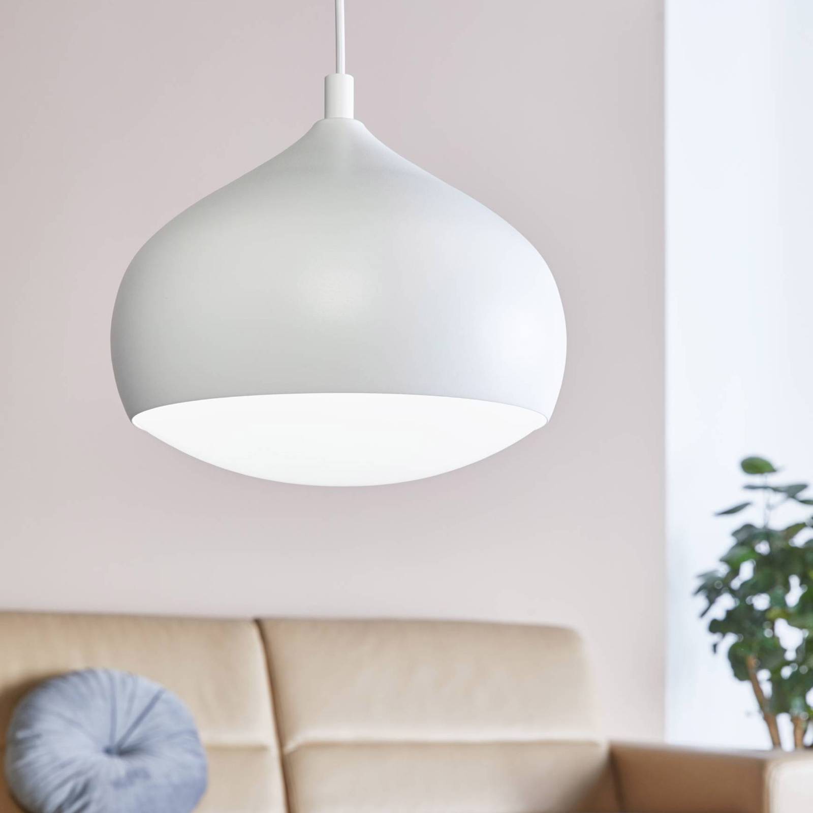Elegante LED hanglamp Comba-C, bedienbaar via app of afstandsbediening De LED-pendelarmatuur Comba-C spreekt een duidelijke vormentaal, die wordt gekenmerkt door een delicate Scandinavische stijl en scoort met functionaliteit. De bijzonder fraai gevormde lampenkap inspireert met zijn pure, witte uitstraling en straalt een al even aangenaam licht uit. Met een afstandsbediening kan de lamp gemakkelijk worden bediend vanaf de bank. Of het nu gaat om in- of uitschakelen, traploos dimmen of de keuze van de lichtkleur uit ontelbare kleurschakeringen en wit – met de afstandsbediening is dit alles in een handomdraai op te roepen en in te stellen. De hanglamp kan dus perfect worden aangepast aan de situatie. Als de keuze is gemaakt om het armatuur via een smartphone of tablet te bedienen met de gratis app, dan zijn er nog een aantal andere mogelijkheden om het armatuur intelligent en comfortabel te bedienen. Naast de integratie in verschillende groepen is de armatuur tijdgestuurd, kunnen vooraf ingestelde lichtscènes binnen enkele seconden worden opgeroepen en is ook de ritmische aanpassing van het licht aan de muziek via de disco-functie mogelijk. Functies / Compatibiliteit – moderne Bluetooth-technologie met beveiligd netwerk – bestuurbaar via gratis Smart Control App van AwoX – bestuurbaar met bijpassende EGLO connect-afstandsbediening (verkrijgbaar als accessoire) – dimbaar – moderne RGB-kleurregeling – Witte lichtregeling van warm wit (2.700 K) – daglicht (6.500 K)