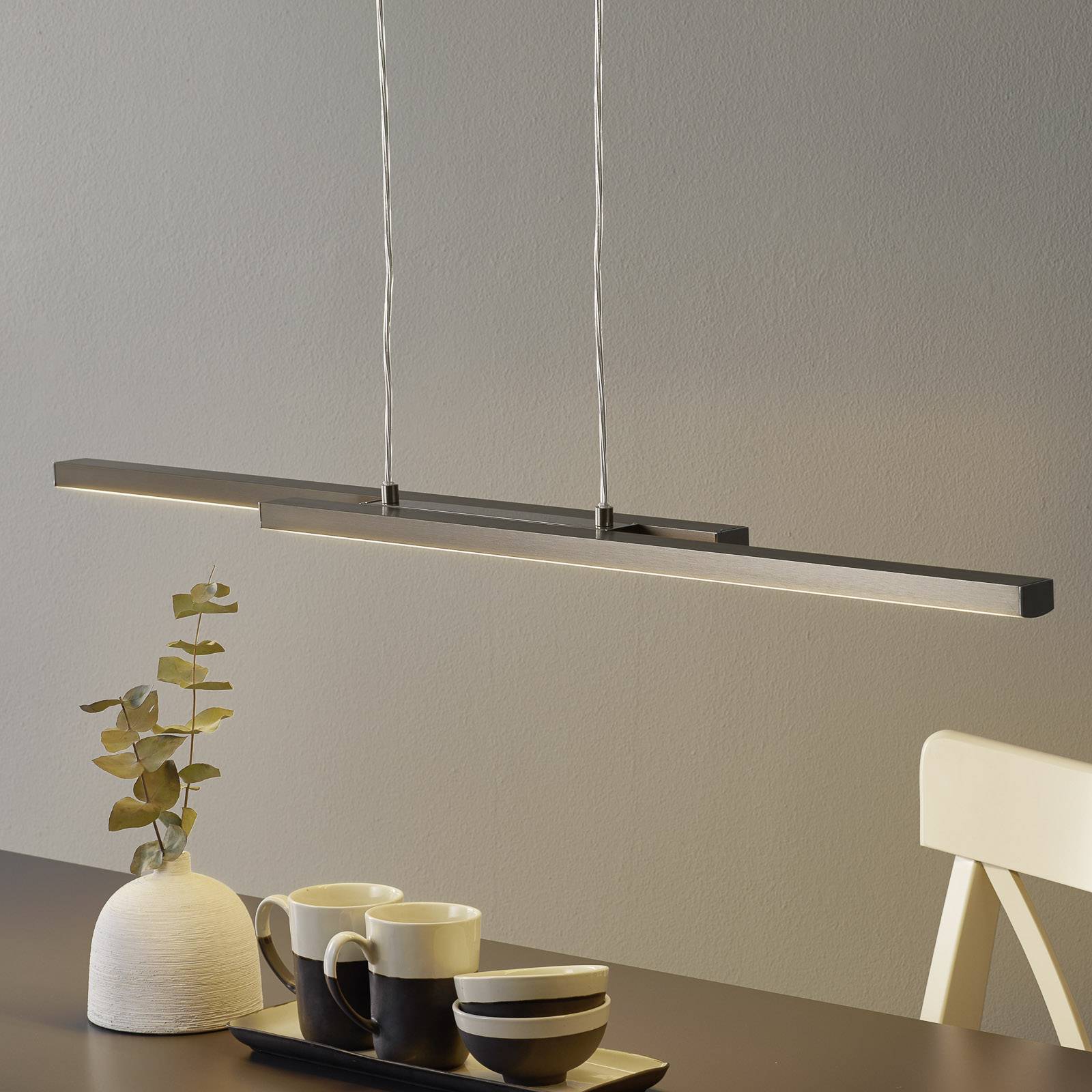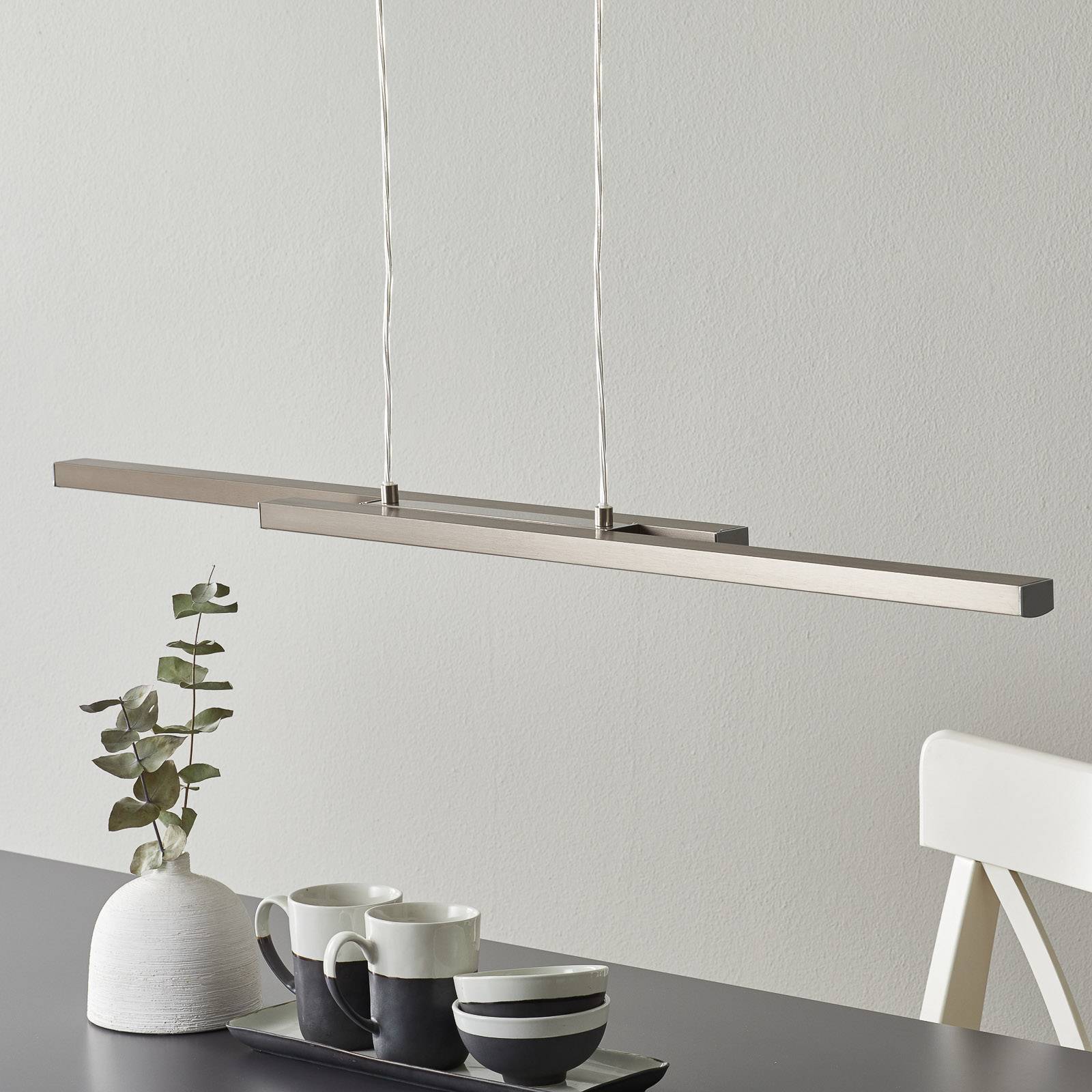 Moderne tafelverlichting met Bluetooth-technologie – LED-hanglamp Fraioli-Ideaal voor de eetkamer- of keukentafel: De moderne LED-lamp Fraioli-C overtuigt niet alleen door haar moderne, rechtlijnige design in mat nikkel, maar ook door haar interne technologie. Uitgerust met energiezuinige Bluetooth-technologie kan de Fraioli-C-armatuur comfortabel met een gratis app en de eigen smartphone of tablet worden aangestuurd. Na het succesvol downloaden van de app hoeft de armatuur alleen nog maar met het systeem verbonden te worden. Individuele armaturen of hele groepen, bijvoorbeeld alle lampen in een ruimte, kunnen gezamenlijk worden aangestuurd en beheerd. Naast het wijzigen van de lichtkleur en het instellen van verschillende kleur- en lichtscenario’s kunnen ook vaste in- en uitschakeltijden voor de armatuur worden geprogrammeerd. Het resultaat is individueel licht zonder dure bijkomende toestellen. Als alternatief is ook de bediening met een geschikte afstandsbediening mogelijk. Deze is verkrijgbaar via de accessoires. Functies / compatibiliteit:- moderne Bluetooth technologie met beschermd netwerk- bedienbaar via gratis Smart Control App van AwoX- bedienbaar met de bijpassende EGLO connect afstandsbediening (verkrijgbaar als accessoire)- dimbaar- RGB kleurregeling- witlichtregeling: warm wit (2.700 K) – daglicht (6.500 K)