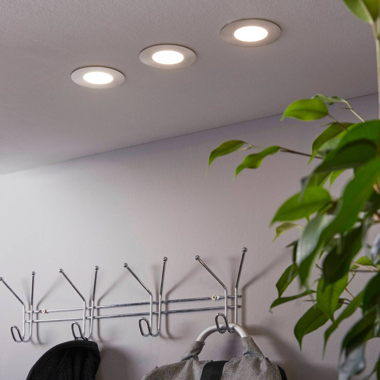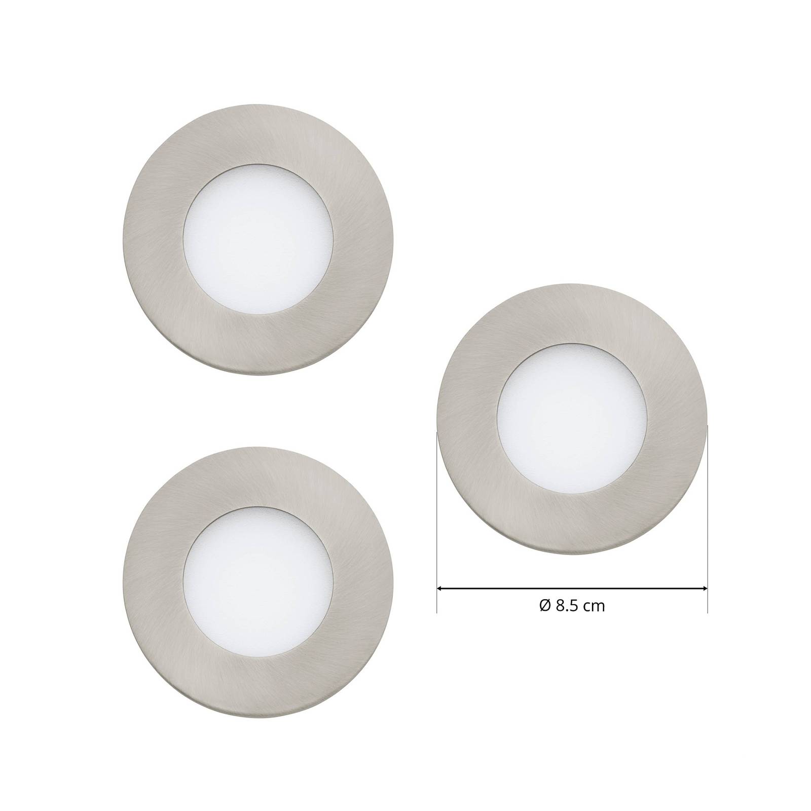 Altijd de juiste lichtsfeer – EGLO connect LED inbouwspot Fueva-C, set van 3 Modern en slim: De LED inbouwspot Fueva-C is uitgerust met intelligente Bluetooth-technologie en kan daarom comfortabel via een geschikte app of afstandsbediening worden bediend. Of het nu gaat om aangenaam warm licht voor een gezellige avond of daglicht-helder licht voor geconcentreerd werken: met de kleine LED-spot Fueva-C is dit alles geen probleem. Naast de praktische witlichtregeling kan de inbouwspot ook in een uit 16 miljoen kleuren geselecteerde toon gloeien. Bij gebruik van de app zijn er direct vooraf geïnstalleerde lichtscenario’s beschikbaar, zoals bijvoorbeeld zon, vulkaan of sneeuw. De set van 3 LED-spots is voorzien van een frame in mat nikkel. Functies / Compatibiliteit: – moderne Bluetooth-technologie met beschermd netwerk – bestuurbaar door middel van een gratis Smart Control App by AwoX – bedienbaar met de bijpassende EGLO connect afstandsbediening (verkrijgbaar als accessoires) – dimbaar – RGB kleurregeling – witlichtregeling: warmwit (2.700 K) – daglicht (6.500 K)