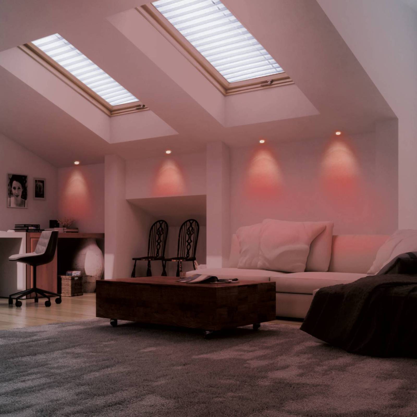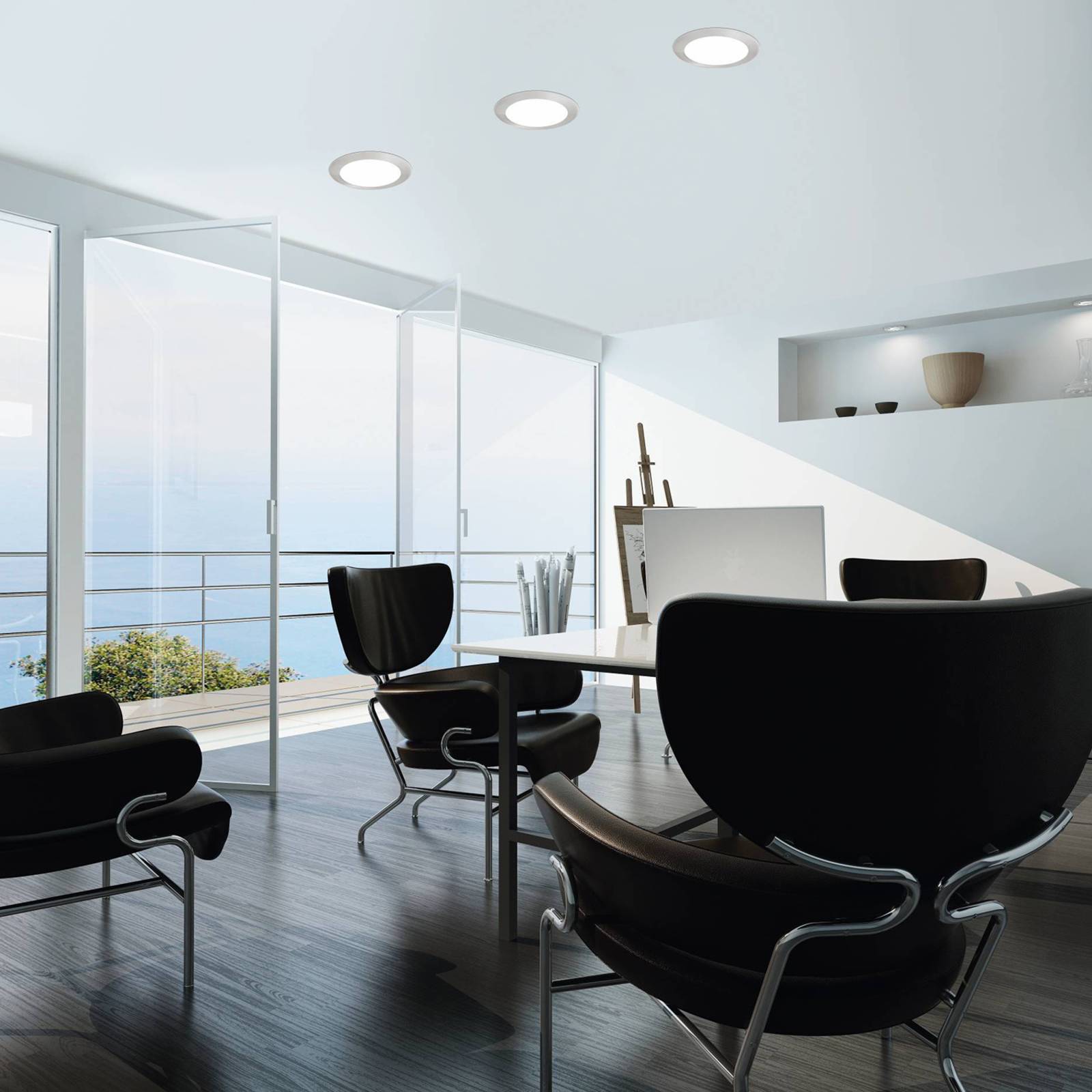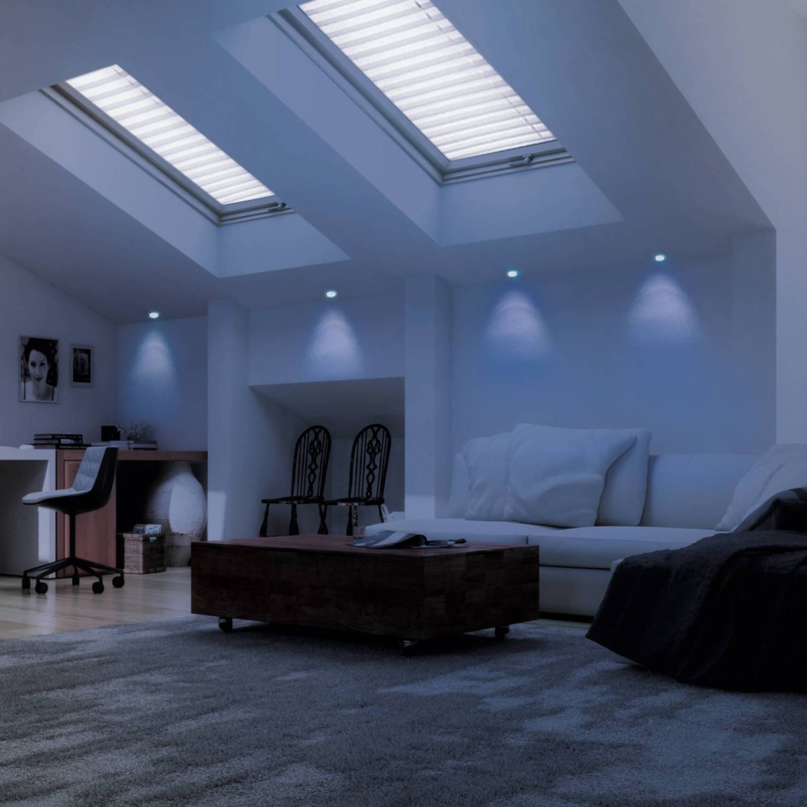Bedienbaar via app – Fueva Connect LED inbouwspot in mat nikkelFueva Connect is een LED inbouwspot waarmee flexibele ruimteverlichting kan worden gecreëerd. Hij kan worden bediend via een app met een smartphone of tablet, of als alternatief met een afstandsbediening die als accessoire kan worden besteld. Voor de Bluetooth-bediening via tablet of smartphone hoeft alleen de gratis beschikbare app voor IOS en Android te worden gedownload. Er zijn geen andere accessoires nodig. Het licht kan ook thuis onderweg of op vakantie worden bediend, bijvoorbeeld om aanwezigheid te simuleren. De instellingen worden veilig en gecodeerd opgeslagen in een cloud en zijn op elk moment toegankelijk.De verlichtingsontwerpopties zijn bijna onbeperkt. Als lichtkleur kan bijvoorbeeld een van de 16 miljoen kleurschakeringen of wit licht van warm wit (2.700 K) tot daglicht (6.500 K) worden gekozen. In elke lichtkleur kan de lichtsterkte traploos worden gedimd. Hiervoor kunnen kleurwisselingen met verschillende snelheden worden ingesteld en kunnen ook speciaal gecreëerde of vooraf ingestelde lichtscenario’s, zoals een zonsopgang om de slaapkamer wakker te maken, worden opgeroepen.De Fueva Connect LED inbouwspot past in elk interieur en kan worden gebruikt om een hele ruimte te verlichten als er meerdere inbouwspots worden geïnstalleerd. Om het licht zonder smartphone te bedienen, is onder de accessoires een afstandsbediening opgeborgen, waarmee bijna dezelfde instellingen kunnen worden uitgevoerd.