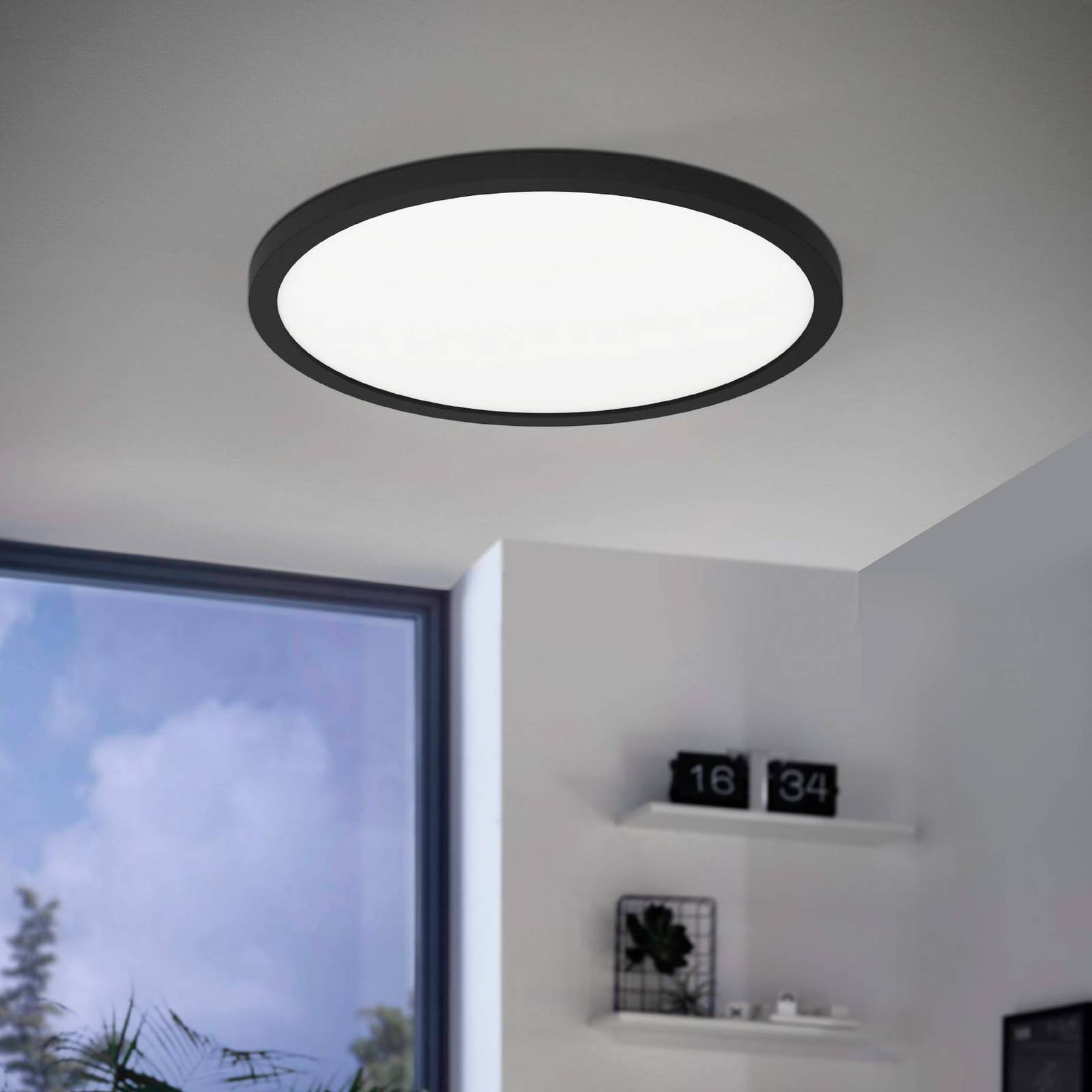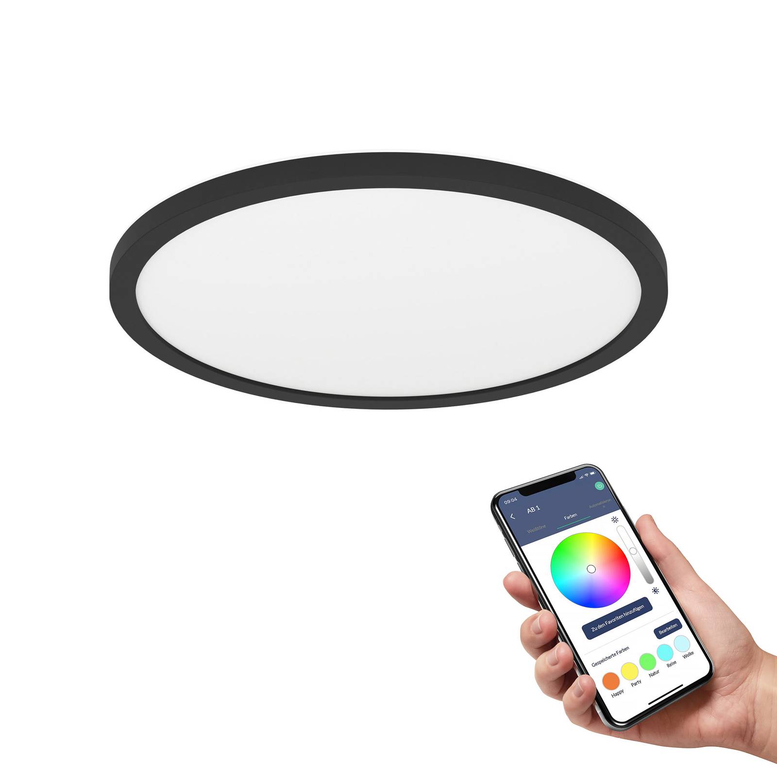 Rovito-Z LED plafondlamp, plat design en slimme bediening via app en voice Met gekleurd en wit licht biedt de vlakke LED-plafondlamp Rovito-Z verschillende verlichtingsmogelijkheden, afhankelijk van de stemming en het tijdstip van de dag. Tegelijkertijd schijnen de geïntegreerde, dimbare LED’s helder en gelijkmatig en zorgen zo voor een solide sfeerverlichting. Rovito-Z kan echter niet alleen aan het plafond worden gemonteerd, maar ook als een eenvoudige wandarmatuur. Het licht wordt slim bediend via een geschikte app, een compatibele spraakassistent of ook klassiek met een geschikte afstandsbediening. Functies / compatibiliteit: – Bedienbaar met de gratis AwoX HomeControl app – Compatibel met smart home-systemen van andere fabrikanten die ZigBee 3.0 gebruiken – directe verbinding met Amazon Echo en Google Home mogelijk – Vergroot bereik door extra Bluetooth mesh – compatibel met alle artikelen van de EGLO connect-c Bluetooth-serie – bedienbaar met geschikte afstandsbediening, ook zonder internettoegang (zie accessoires)