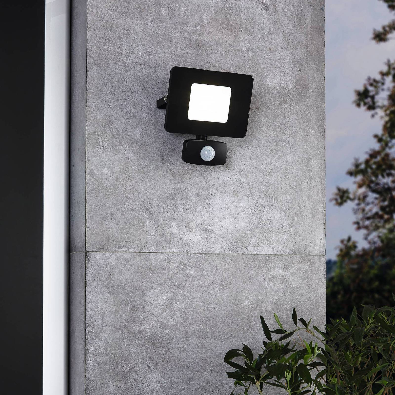 Zwarte LED-buitenspot Faedo 3 met bewegingsmelder De Faedo 3 LED buitenspot kan op verschillende manieren op de montagebeugel worden gemonteerd, hetzij aan de muur, onder een dakoverstek of zelfs in een hoek. De aluminium schijnwerper is voorzien van een bewegingssensor. Deze sensor detecteert bewegingen onder een hoek van 120° en heeft een maximaal bereik van 12 meter. De reactiehelderheid van de sensor kan worden ingesteld in het bereik van 5-2.000 lux en de inschakeltijd kan worden gekozen tussen 5 seconden en 60 minuten. De Faedo 3 buitenschijnwerper kan worden gebruikt om automatisch een groot aantal gebieden op het terrein te verlichten zodra de sensor beweging detecteert. De in de schijnwerper geïnstalleerde LED’s achter helder glas zorgen voor licht in een universele witte lichtkleur.