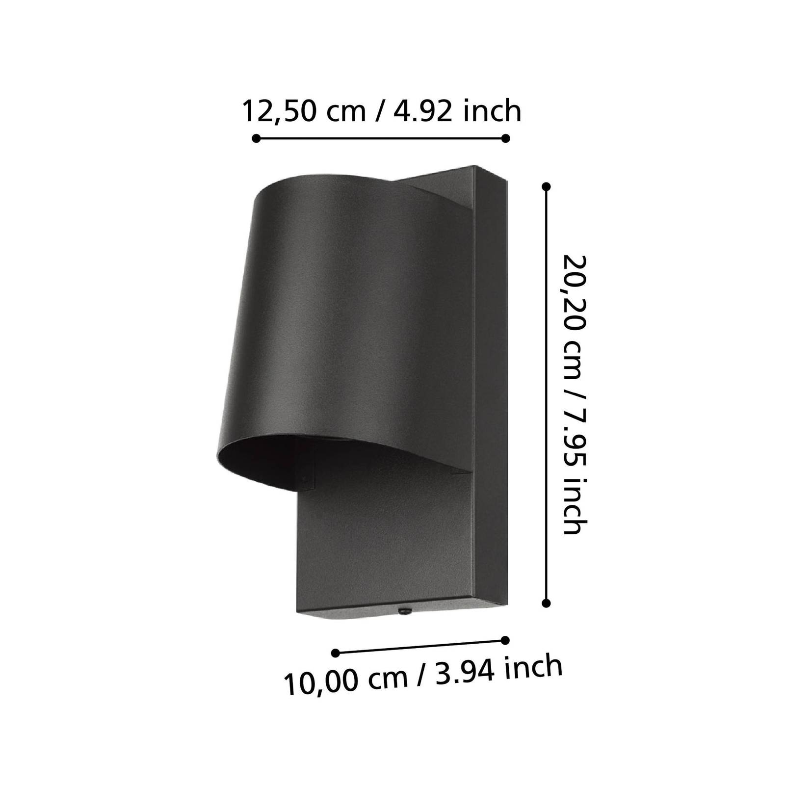 Directe neerwaartse verlichting straalt de zwarte LED buitenwandlamp Stagnone uit, gemaakt van aluminium en staal. Een vervangbare GU10 LED lamp is inbegrepen.