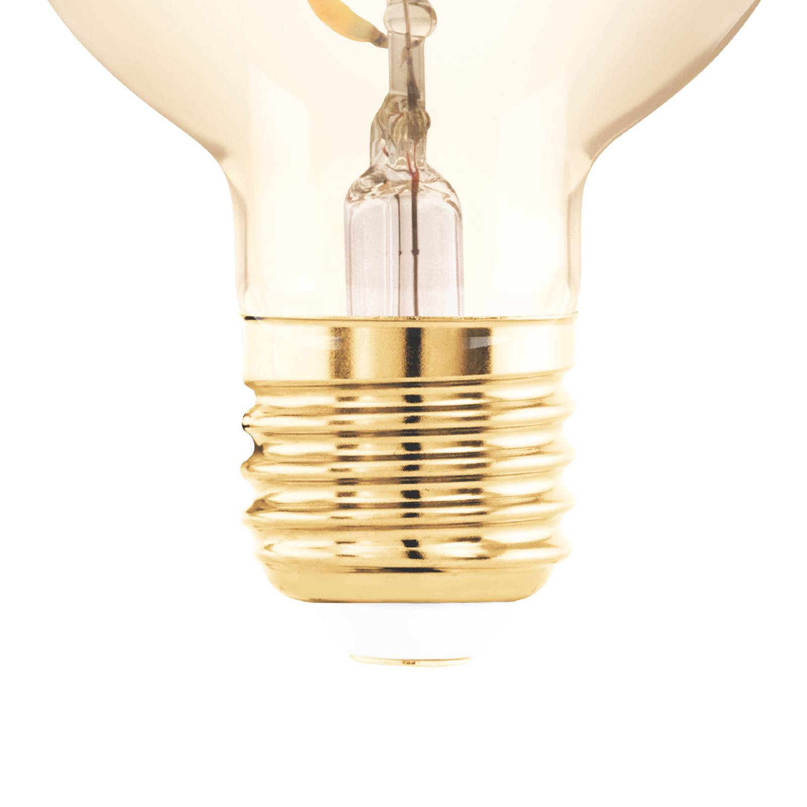 Deze warmwitte E27 LED lamp in G60 bolvorm met 4W is dimbaar en is ideaal voor decoratieve verlichting dankzij het amberkleurige getinte glas en de gloeilamp-look.