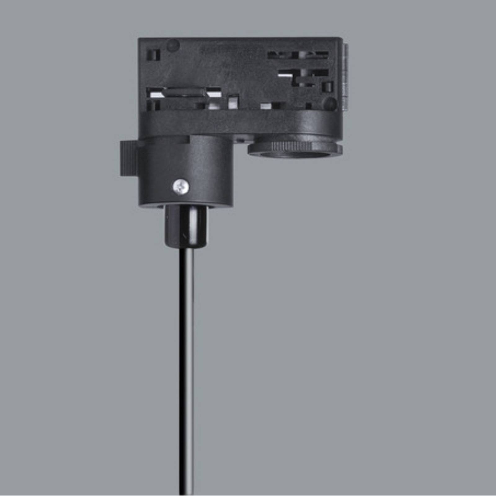Railadapter voor ERCO 3-fase rail, kit voor één pendelarmatuur Deze 3-fase track adapter met 150 cm ophanging is een kit die het mogelijk maakt een pendelarmatuur te vormen voor gebruik via de rail. – Aansluitkabel 150, 3 x 0,75 mm², max. 250 V / 10 A – Draagvermogen: max. 3,3 kg – niet geschikt voor DALI bediening van de baan