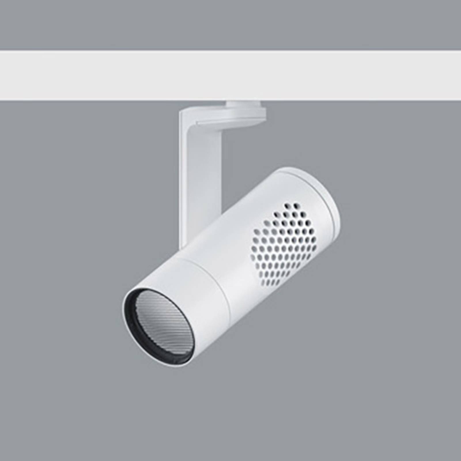 Instelbare LED-spot Eclipse S voor bediening via Casambi app voor 230 V 3-circuit circuits – 12,4 W LED, lichtverdeling Wallwash Dankzij de bijzonder brede lichtspreiding is de LED-spot Eclipse van ERCO de ideale keuze voor de uitrusting van een 3-fasestroomrail wanneer grote oppervlakken in verkoop-, bedrijfs-, recreatie- en ontvangstruimten moeten worden verlicht. Daartoe zijn, naast de krachtige LED’s, een speciale collimatoroptiek van optisch polymeer en een donkerlichtlens in de cilindrische, aluminium kop aangebracht. Dankzij de flexibel gemonteerde arm kan de kop 270° draaien en 360° roteren op de railadapter. Bovendien is Eclipse S slim te bedienen met de Casambi app op de smartphone/tablet. – met spooradapter voor ERCO 3-fase spoor en Hi-trac 3-fase spoor – Zeer goede kleurweergave: Ra 92 – Aangesloten vermogen: 15,9 W – met ERCO voorschakelapparatuur en Casambi Bluetooth regeleenheid – Verbinding met smartphone/tablet via Bluetooth – Schakelbaar, dimbaar en integreerbaar in scènes via Casambi app (gratis beschikbaar voor iOS en Android) – Te bedienen met andere Casambi-compatibele producten